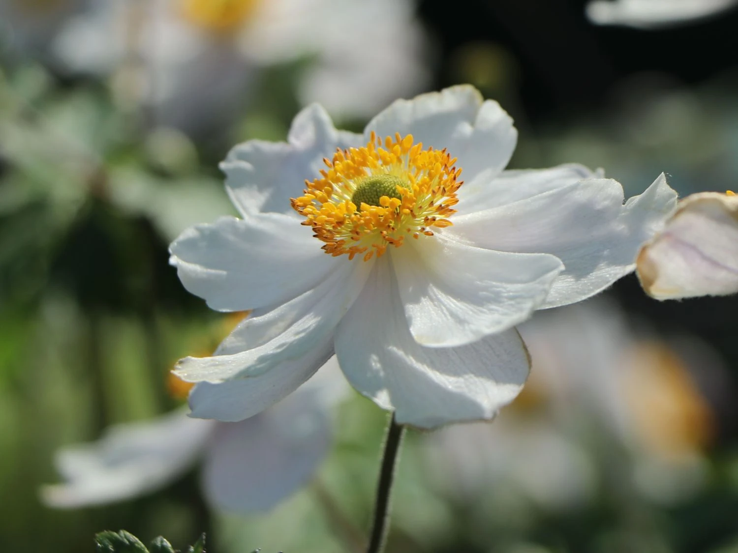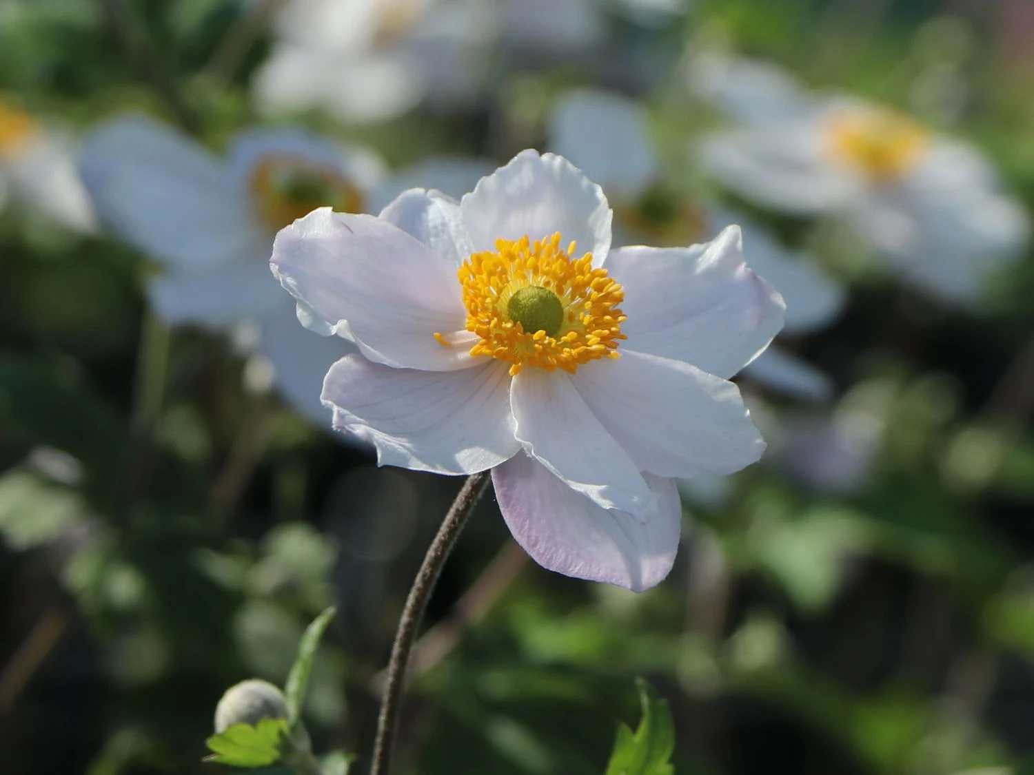 Die Staude wächst aufrecht und buschig. Im Garten bevorzugt Anemone x cultorum ‚Dreaming Swan‘ einen halbschattigen Standort. Staunässe oder lange Trockenphasen machen der Anemone zu schaffen. Der Pflanzenfreund lässt ihr an trockenen Tagen, vor allem zur Blütezeit, ausreichend Gießwasser zukommen. Ein wunderschönes Bild entsteht, wenn der Gärtner die Anemone ‚Dreaming Swan‘ in kleinen Tuffs pflanzt. Dabei ist ein Pflanzabstand von rund 30 Zentimeter ideal. Auf einen Quadratmeter passen maximal zwölf Exemplare der Pflanzen. Einen hinreißenden Anblick bietet die Anemone ‚Dreaming Swan‘ in einer Pflanzkombination mit Hortensien oder Farnen. Eisenhut, Verbene oder Silberkerzen sind ebenfalls Traumpartner für das Windröschen. Auch Schmetterlinge bekommen von der Blütenpracht der Pflanze nicht genug und sammeln an der Anemone ‚Dreaming Swan‘ Nektar. Der Gärtner schneidet die Stängel im Spätherbst zurück. Die Pflanze zieht sich komplett ins Erdreich zurück, um im Frühjahr erneut frisch auszutreiben. Ein besonderer Schutz in der kalten Jahreszeit ist für die winterharte Staude nicht notwendig, sie ist robust und anspruchslos. Als Beetpflanze ist Anemone ‚Dreaming Swan‘ ein großartiger Blickfang. Die wunderschönen Blüten eignen sich perfekt für die Vase. Sie sorgt drinnen und draußen für magische Momente.