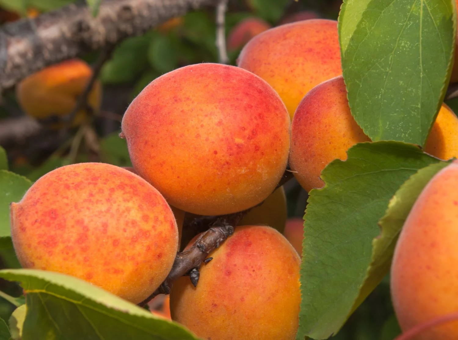Die Ernte der Aprikosen beginnt abhängig vom Standort im zweiten oder dritten Standjahr und fällt regelmäßig sowie hoch aus. Anfang bis Mitte August sind die köstlichen Früchte pflückreif und saftig. Als Tafelobst sind sie hervorragend geeignet. Des Weiteren eignen sich die Aprikosen für die Zubereitung von Kompott und Marmelade sowie für Süßspeisen und Blechkuchen. Etwas Besonderes ist das Brennen von Schnaps aus den vollsaftigen Früchten der Aprikose ‚Bergeron‘. Der robuste Aprikosenbaum erreicht eine Höhe von bis zu 500 cm und seine Krone hat eine rundliche Form. Prunus armeniaca ‚Bergeron‘ bevorzugt sonnige bis halbschattige, geschützte Standorte. Der ideale Boden ist leicht kalkhaltig und weist einen erhöhten Humusgehalt auf. Für die Aprikose ‚Bergeron‘ dürfen es leichte und sandige sowie mittelschwere Böden sein, welche allerdings keinerlei Neigung für Staunässe zeigen sollten. Der Aprikosenbaum ist als Solitär hervorragend geeignet und bietet sich speziell für Standorte in geschützter südlicher oder westlicher Lage an. Nahe an Hauswänden steht die Pflanze ideal. Die Aprikose ‚Bergeron‘ ist winterhart und äußerst gesund. Diese Sorte hat ihren Ursprung als Zufallssämling in Frankreich und ist dort als wichtigste Aprikosensorte innerhalb des Erwerbsanbaus im Einsatz.