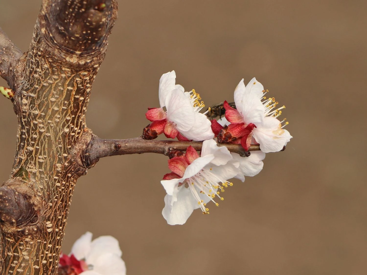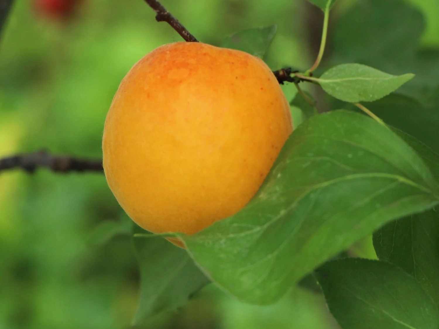 Aprikosen gelten als selbstfruchtend. Die zwittrigen Blüten benötigen nicht zwingend einen Befruchter in ihrer Nähe. Trotzdem ist für eine reiche Ernte immer die Präsenz einer anderen Aprikosensorte, eines Pfirsichbaums oder auch eines Mandelbäumchens in der Nähe von Vorteil. Bienen und Hummeln werden es danken und kümmern sich gerne um das Bestäuben der Blüten. Nach der erfolgreichen Bestäubung entwickeln sich die gelben Früchte – die Aprikosen. Die Früchte erreichen eine Größe von 4-8 cm. Sie sind kugelig bis eirund und zählen aufgrund des Steins in der Mitte zu den Steinfrüchten. Die samtige, manchmal glatte Haut der Früchte ist hellgelb bis orangegelb. Die zur Sonne geneigte Seite der Früchte ist gerötet. Aprikosen haben eine typische Naht, die die Frucht in zwei Fruchtbacken teilt. Diese Naht verläuft vom Stiel bis zum Ansatzpunkt des Stempels. Unter der Haut befindet sich das weiße Fruchtfleisch der Aprikose. Bei manchen Sorten ist es gelb oder auch in einem intensiven Orange. Die Früchte sind herrlich saftig, aromatisch und absolut wohlschmeckend. Innerhalb des Kerns befindet sich ein Samen, der nicht für den Verzehr geeignet ist. Die wämeliebende Aprikose (Zwergform) bevorzugt einen Standort in sonniger Lage. Die winterharte Pflanze benötigt einen nährstoffreichen, ausreichend feuchten und gut durchlässigen Untergrund. Prunus armeniaca (Zwergform) ist ein wunderschönes Ziergehölz für den Bauerngarten, liefert köstliche Früchte für den Direktverzehr und bereichert einen naturnahen Garten.