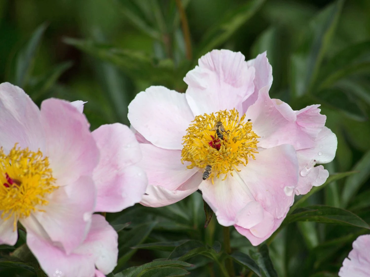 Es gibt unzählige Sorten von rosa Paeonien. Aber die grazile Asiatische Pfingstrose ‚Nymphe‘ ist eine umwerfende Schönheit. Diese schöne Pfingstrose entwickelt ihre Blüten in Form einer Schale. Diese Schale bildet sich aus einer einfachen bis doppelten Lage von Blütenblättern. In der Mitte präsentieren sich die gelben Staubgefäße in üppiger Zahl. Die (bot.) Paeonia lactiflora ‚Nymphe‘ erreicht eine Höhe von 70 bis 80 Zentimetern und ist der glänzende Mittelpunkt im Blumenbeet. Die Form der Blüten, der sanfte Duft und die Farbgebung wirken mit einer charmanten Natürlichkeit. Diesem frühsommerlichen Zauber entzieht sich niemand. Um das gesunde Wachstum nicht zu bremsen, lässt der Gärtner seine Pfingstrose für viele Jahre an der gleichen Stelle. Dort entwickelt sie sich innerhalb weniger Jahre zu einer prachtvollen Schönheit.