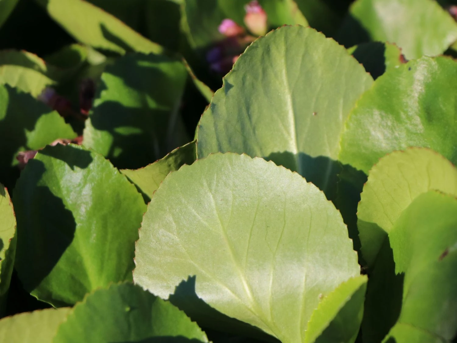 Staunässe oder sumpfiger Untergrund verderben die Pracht der Bergenia cordifolia ‚Baby Doll‘. Im deutschsprachigen Raum ist die Bergenie ‚Baby Doll‘ unter dem Namen Steinbrech oder Garten-Riesen-Steinbrech ein Begriff. In England trägt die Staude den Namen Pigsqueaks. Er bezieht sich auf das quiekende Geräusch, das beim Reiben ihrer dicken, ledrigen Blätter entsteht. Die vielfältigen Züchtungen der Bergenie tragen wundervolle, teils poetisch klingende Beinamen. Sie machen der Poesie alle Ehre. Die Bergenie ‚Baby Doll‘ ist eine bezaubernde, zartrosa blühende und liebreizende Schmuckblatt-Staude. Im Garten ist sie vielfältig einsetzbar. Ob im halbschattigen Bereich von Häusern und Mauern, an Rändern von verschlungenen Gartenwegen oder in der Nähe von Bächen und Teichen. Fast überall fühlt sich die Staude gut gelegen. Auch als Gruppe unter Gehölzen oder auf Rabatten macht die Bergenie ‚Baby Doll‘ eine gute Figur. Sie ist vor allem in den Monaten der kalten Jahreszeit eine wirkliche Zierde.