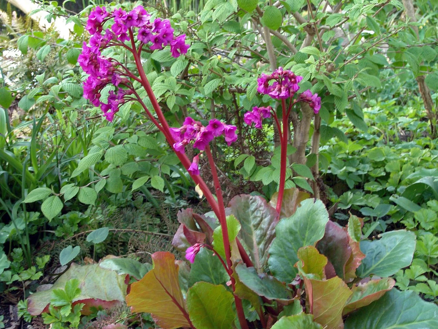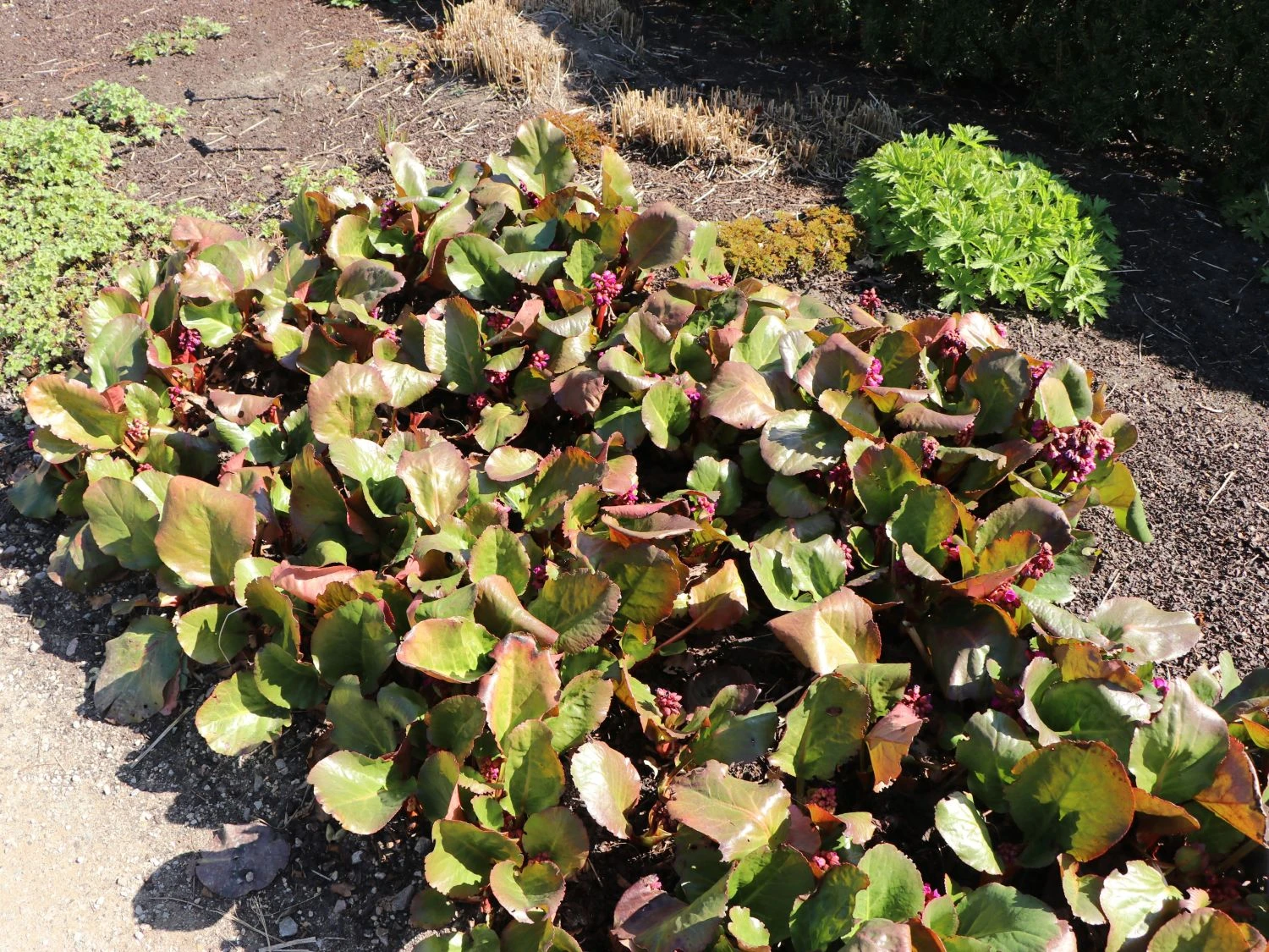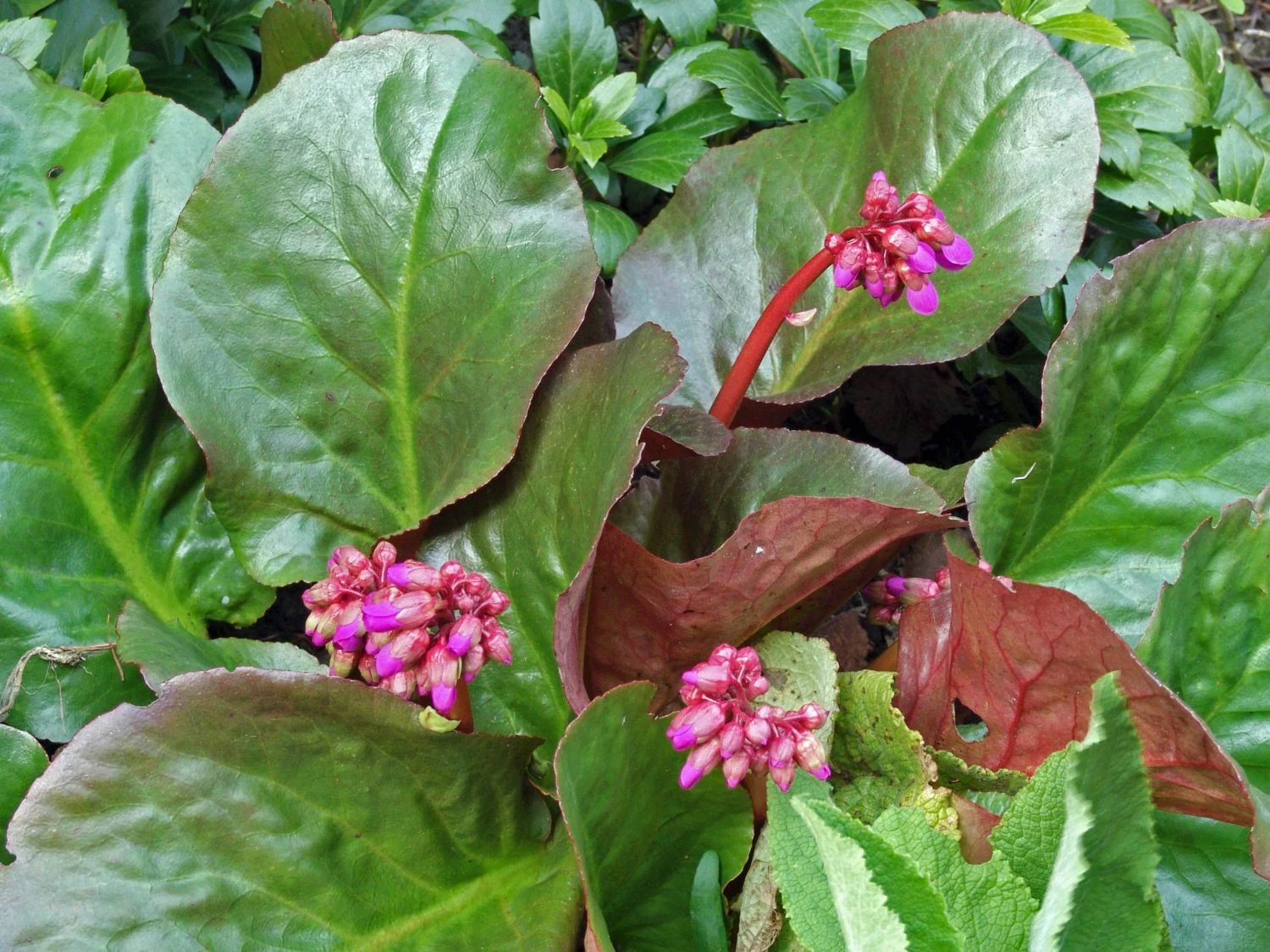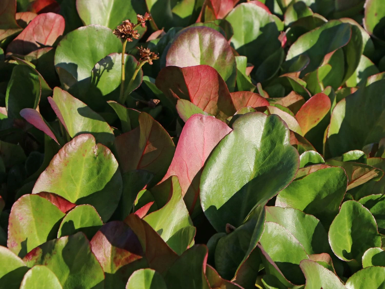 Aufgrund ihrer imponierenden und überwältigenden Eigenschaften zeichnete die Bergenie ‚Eroica‘ im Jahr 2009 mit dem Award of Garden Merit aus. Somit findet sie häufiges Verwenden in Beeten, Staudenbeeten, Steinanlagen, am Gehölzrand und auf Freiflächen. Die Bergenia cordifolia ‚Eroica‘ hat einen bodendeckenden und kriechenden Wuchs. Im Laufe ihres Lebens erreicht sie eine Höhe von 30 bis 40 Zentimetern und eine Breite von ebenfalls 35 bis 40 Zentimetern. Somit ist das Pflanzen von sechs Stück pro Quadratmeter nachvollziehbar. Das äußerst große Laub der Bergenie ‚Eroica‘ verleiht ihr ein markantes und auffälliges Aussehen. Durch den visuellen Effekt der rötlichgrünen Färbung der Blätter, verstärkt sich dieser. Das Laub ist länglich, kurz gestielt und hat einen fein gezähnten Rand. Im Winter färben sich die immergrünen Blätter rot. Somit ist die Bergenia cordifolia ‚Eroica‘ ganzjährig eine herrliche Blattschmuckpflanze. In der Zeit von April bis Mai erreicht sie durch die Blütezeit ein äußerst attraktives und beeindruckendes Erscheinungsbild. Auf stabilen, aufrechten und dunklen Stielen bildet die Bergenie ‚Eroica‘ bildhübsche doldenartige Blütenstände aus.
