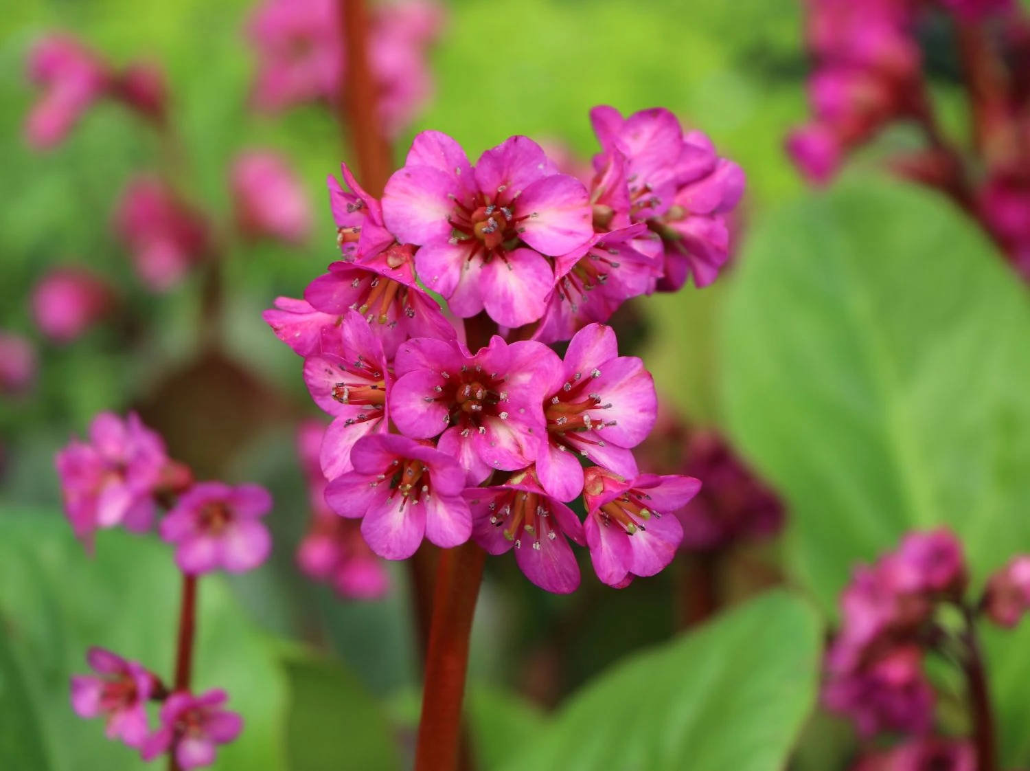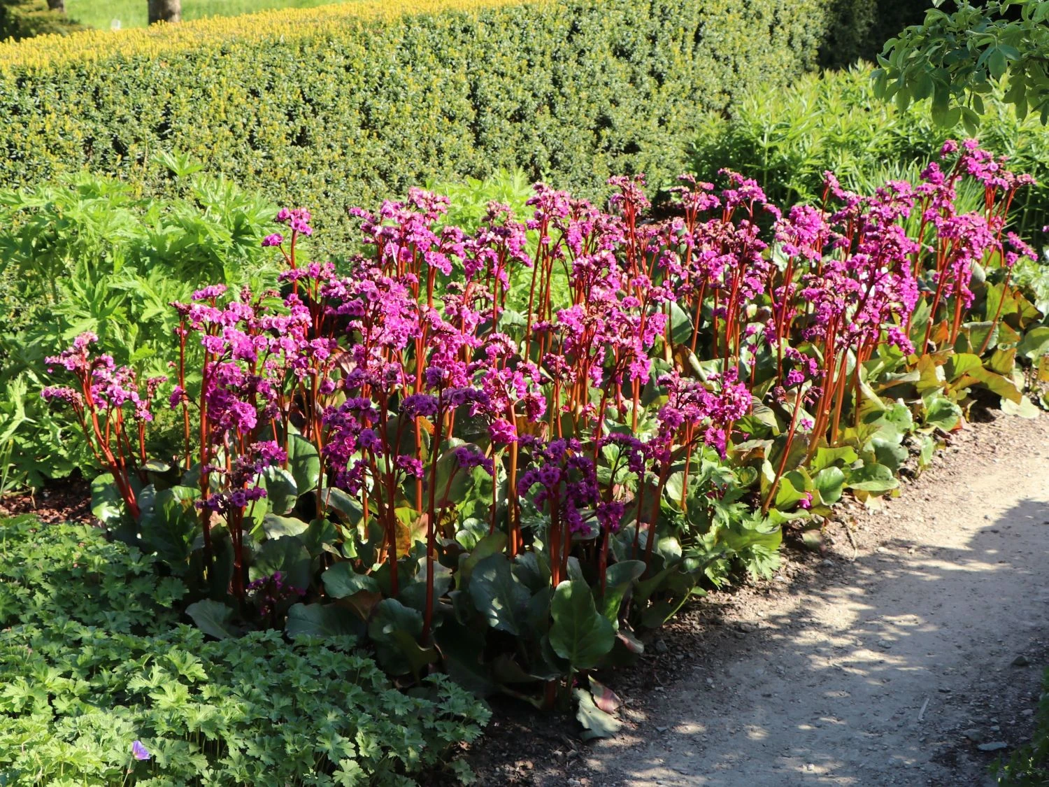 Genügsame Gartenattraktion mit auffälligen und hinreißenden Blütenständen. Die Bergenie ‚Eroica‘ gehört zur Familie der Steinbrechgewächse. Als immergrüne Blattschmuckpflanze bietet sie ganzjährig ein ansprechendes und zauberhaftes Erscheinungsbild. Während der Blütezeit erscheint die Bergenia cordifolia ‚Eroica‘ mit doldenartig blühenden, großartigen Blütenköpfen. Die kräftige, intensive Farbe und der auffällige Wuchs der bildschönen Blütenstände machen diese Staude einzigartig. Zugleich begründet sich die Beliebtheit der Bergenie ‚Eroica‘ bei Gärtnern mit ihrer Anspruchslosigkeit, aufgrund dessen, dass sie an vielen Standorten gedeiht. Somit ist sie ideal, um als Einzelpflanze oder in der Gruppe Gärten oder Parkanlagen auszuschmücken. Kombiniert mit aufrecht wachsenden, hellblühenden Zierpflanzen verstärkt sich ihr faszinierendes Aussehen.