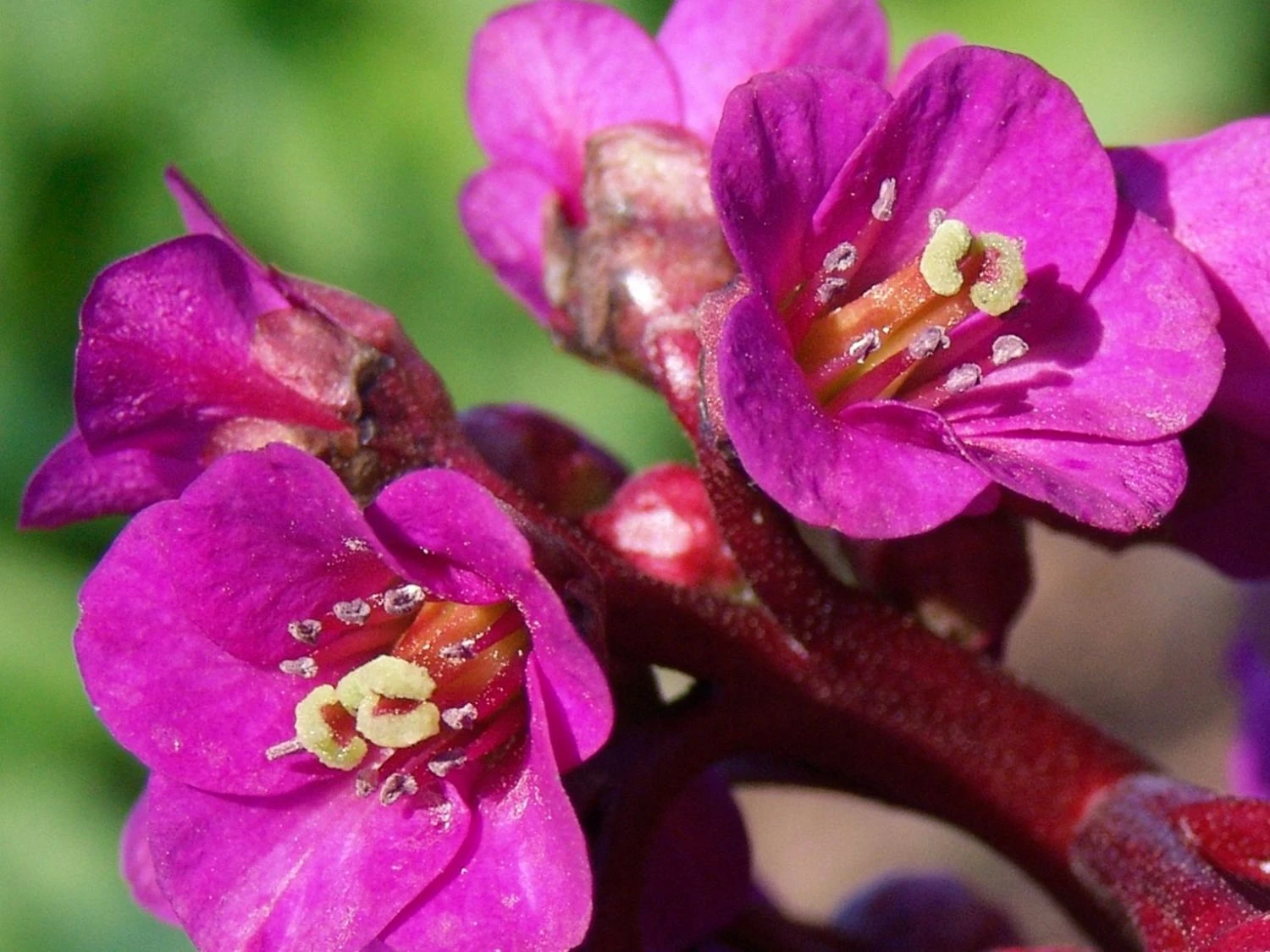 Sie ragen weit über das Laub hinaus. Somit haben die Blütenköpfe ein Aufsehen erregendes, imposantes und prächtiges Antlitz. Die einfachen Einzelblüten sind glockenförmig geformt. Farblich erscheinen die Blütenköpfe in einer kräftigen und intensiven, purpur-violetten Nuance. In Kombination mit dem großem Laub bietet die Bergenia cordifolia ‚Eroica‘ ein kontrastreiches und bezauberndes Naturschauspiel. Das Laub ist weithin sichtbar und zieht die Augen der Betrachter schnell in ihren Bann. Die Bergenie ‚Eroica‘ ist äußerst robust, winterhart und anpassungsfähig. Sowohl das Pflanzen an sonnigen, halbschattigen Standorten ist nachvollziehbar. Sie legt Wert auf frischen, gut durchlässigen und humosen Boden. Die Bergenia cordifolia ‚Eroica‘ kommt sowohl mit normalem sowie mit trockenem Boden zurecht. Zusätzlich ist sie aufgrund ihrer Robustheit und wegen ihrem intensiven, äußerst wohl riechenden Duft ideal als Schnittblume geeignet.