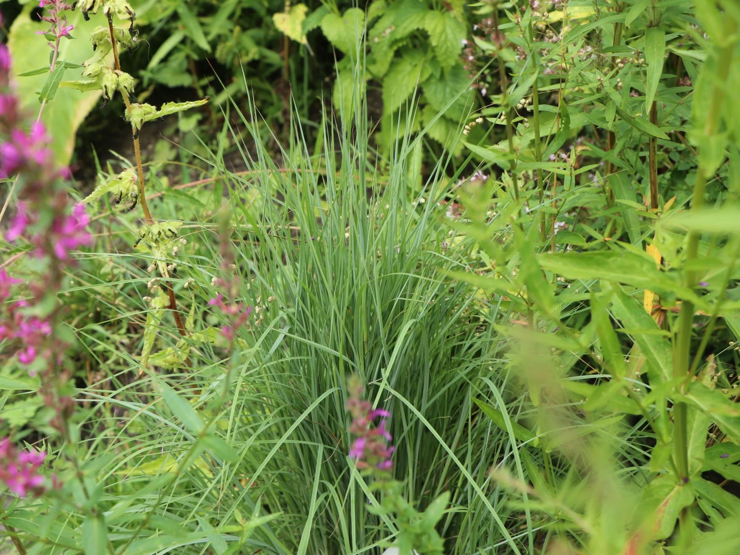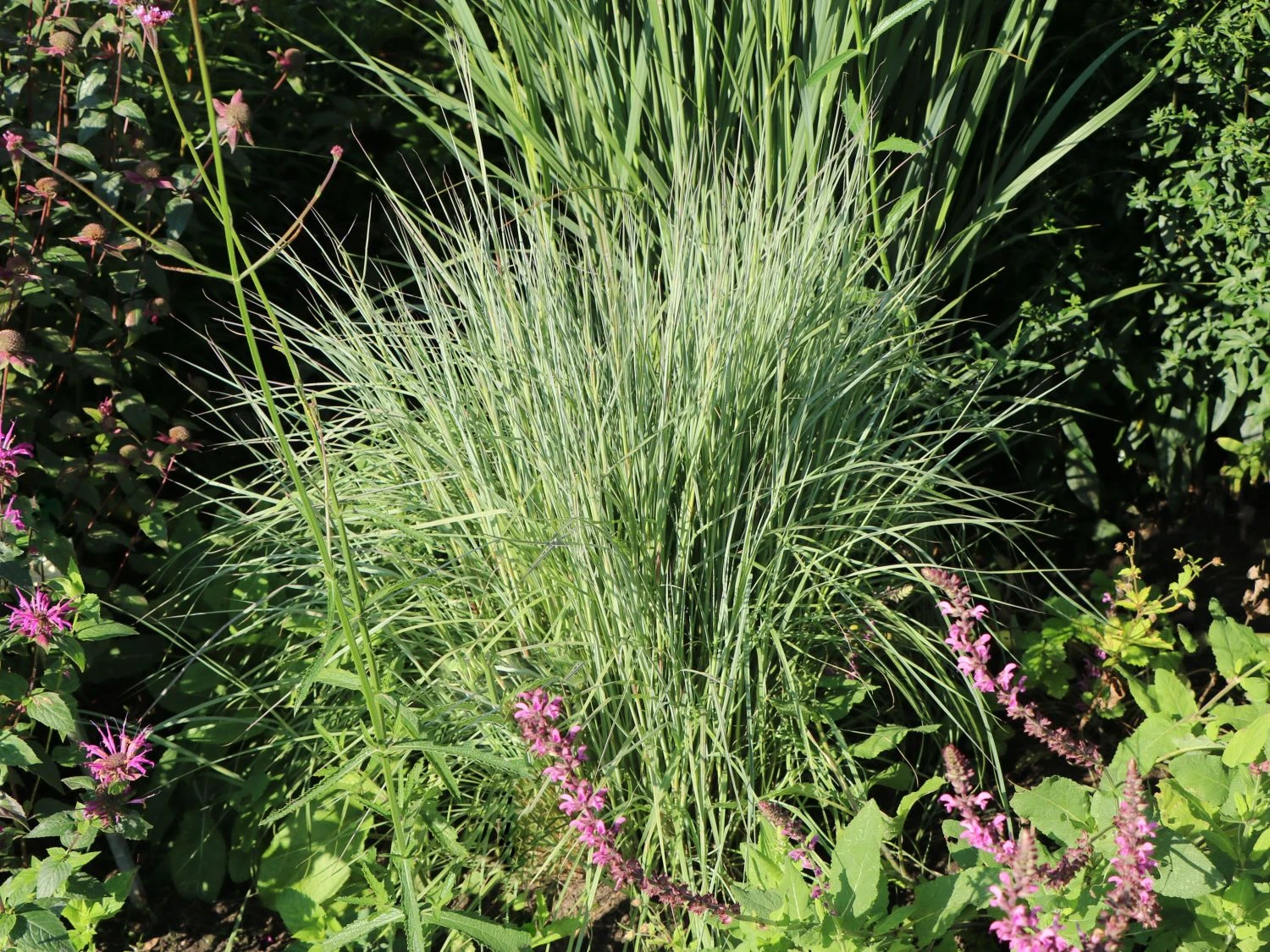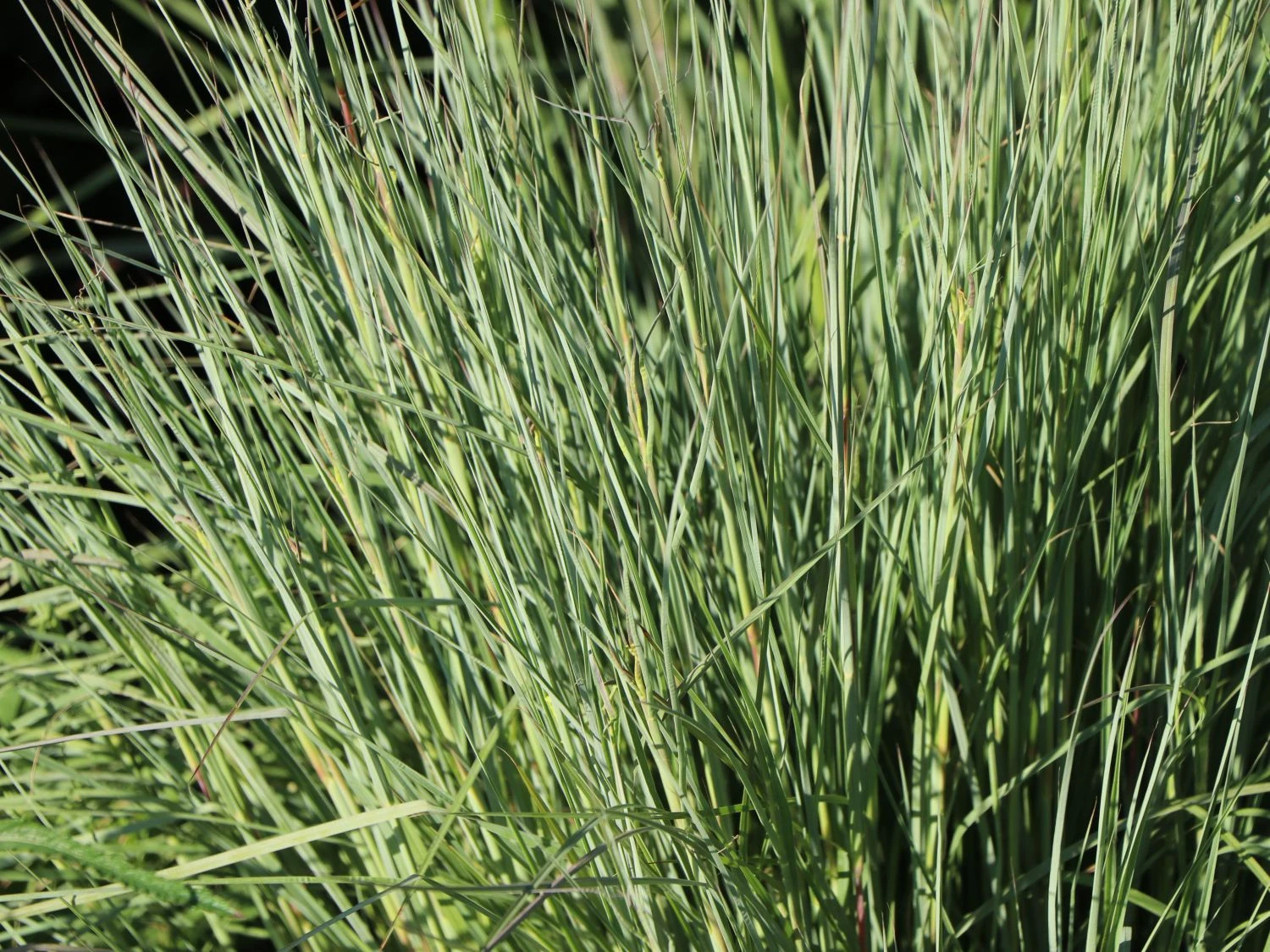 Begeistert betrachtet der Gärtner das Spiel des Windes mit den zierlichen Halmen des Blaugrauen Präriegrases ‚Prairie Blues‘. Beinahe besinnlich wirkt dieser Anblick und verleiht dem Lieblingsplatz im Garten Ruhe. Das grasartige, dünne und spitze Blatt der Pflanze zeigt sich in einer schönen graugrünen bis blaugrünen Farbe. Im Herbst färbt sich das prächtige Schizachyrium scoparium ‚Prairie Blues‘ in orangene Töne und setzt warme Farbtupfer in die Szenerie. Eindrucksvoll ist nicht nur die Farbe, auch der aufrechte, horstbildende Wuchs überzeugt mit einer Höhe von bis zu 60 Zentimetern. Dabei sind die einzelnen grasähnlichen Halme ab einer gewissen Höhe teilweise überhängend. Zur Blütezeit erreicht das Gras gar eine Wuchshöhe von einem Meter. Dann recken sich die großen Blütenrispen nach oben und vervollkommnen die harmonische Optik der mehrjährigen Staude. Von September bis Oktober komplettieren die bräunlich-gelben Blütenstände als Bild. Sie setzen sich vom Blatthorst der Pflanze ab und wirken so leicht, dass der Eindruck entsteht, der Wind trägt sie. Am Wogen der Staude erfreut sich der Pflanzenfreund in besonderem Maße, wenn er sie auf einer Freifläche inszeniert.