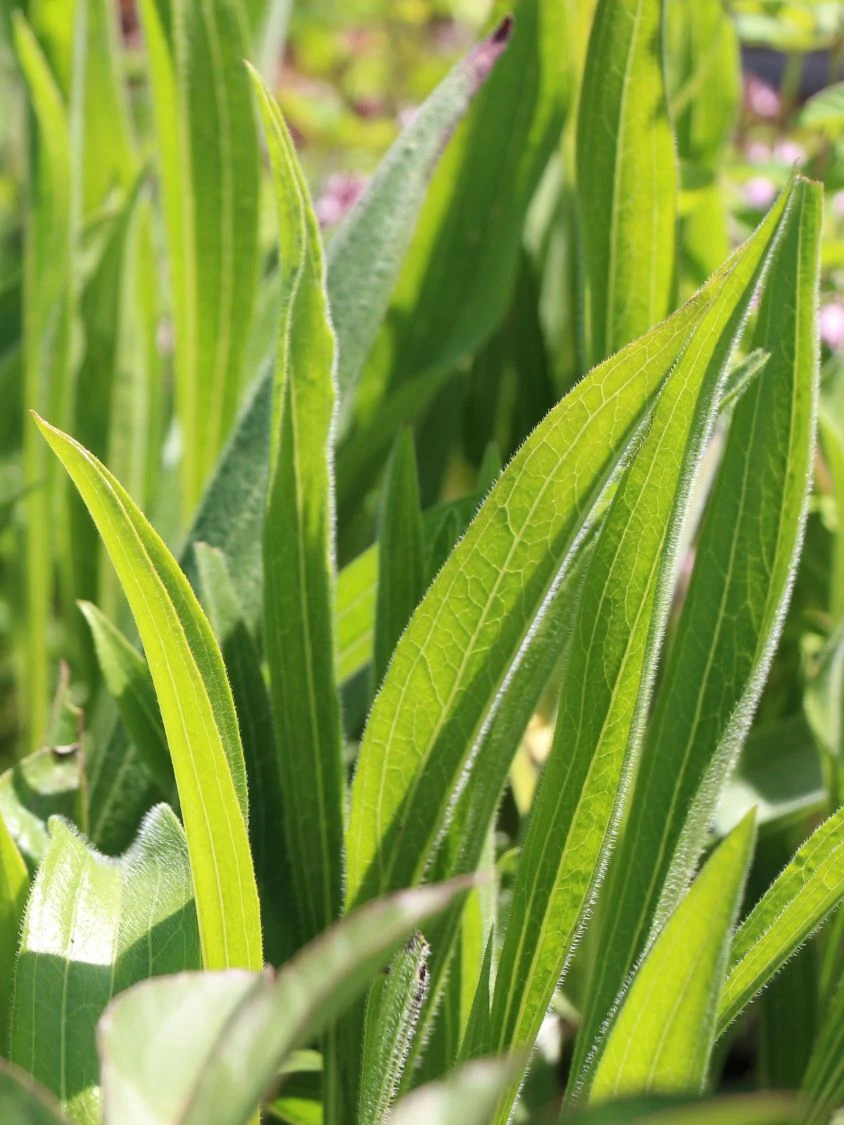 Besonders schön entfaltet sich die wild-romantische Optik der Staude in einer Pflanzengruppe. Stehen mehrere Exemplare zusammen, entsteht ein regelrechtes Blütenmeer. Vier bis sechs Pflanzen pro Quadratmeter reichen für ein dichtes und wirkungsvolles Bild aus. Der Gärtner plant mit einem Pflanzabstand von circa 45 Zentimetern. So hat jede Staude genügend Raum sich zu entfalten. Die interessant geformte Blüte des Bleichen Scheinsonnenhuts ist ein Blickfang für jeden Staudenfan. Die strahlenförmig angeordneten Blütenblätter hängen um eine auffällig gewölbte und kugelig anmutende Mitte. Dadurch gleicht die Blüte von Echinacea pallida einem Federball. Ein verblüffender Anblick, der den Gärtner interessiert näher treten lässt. Die eigenwilligen Blüten erheben sich über das Laub der Staude. Die Blätter sind lanzettlich geformt. Die Blattspreite ist ganzrandig und ihre Oberfläche rau behaart. Das Laub ist steif und streckt sich aufrecht nach oben. Diese Staude ist ein Gartenbewohner, der mit seinen einzigartigen Blüten für natürliche Romantik sorgt und zugleich Leben in das grüne Reich bringt. Sie locken viele Schmetterlinge an und die bunten Flügel komplettieren das hübsche Rosa der zurückhaltenden Blüten.