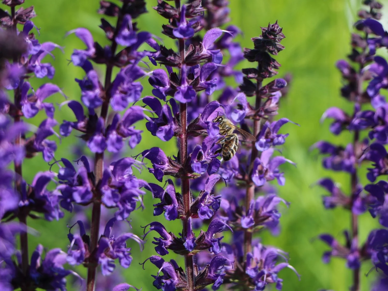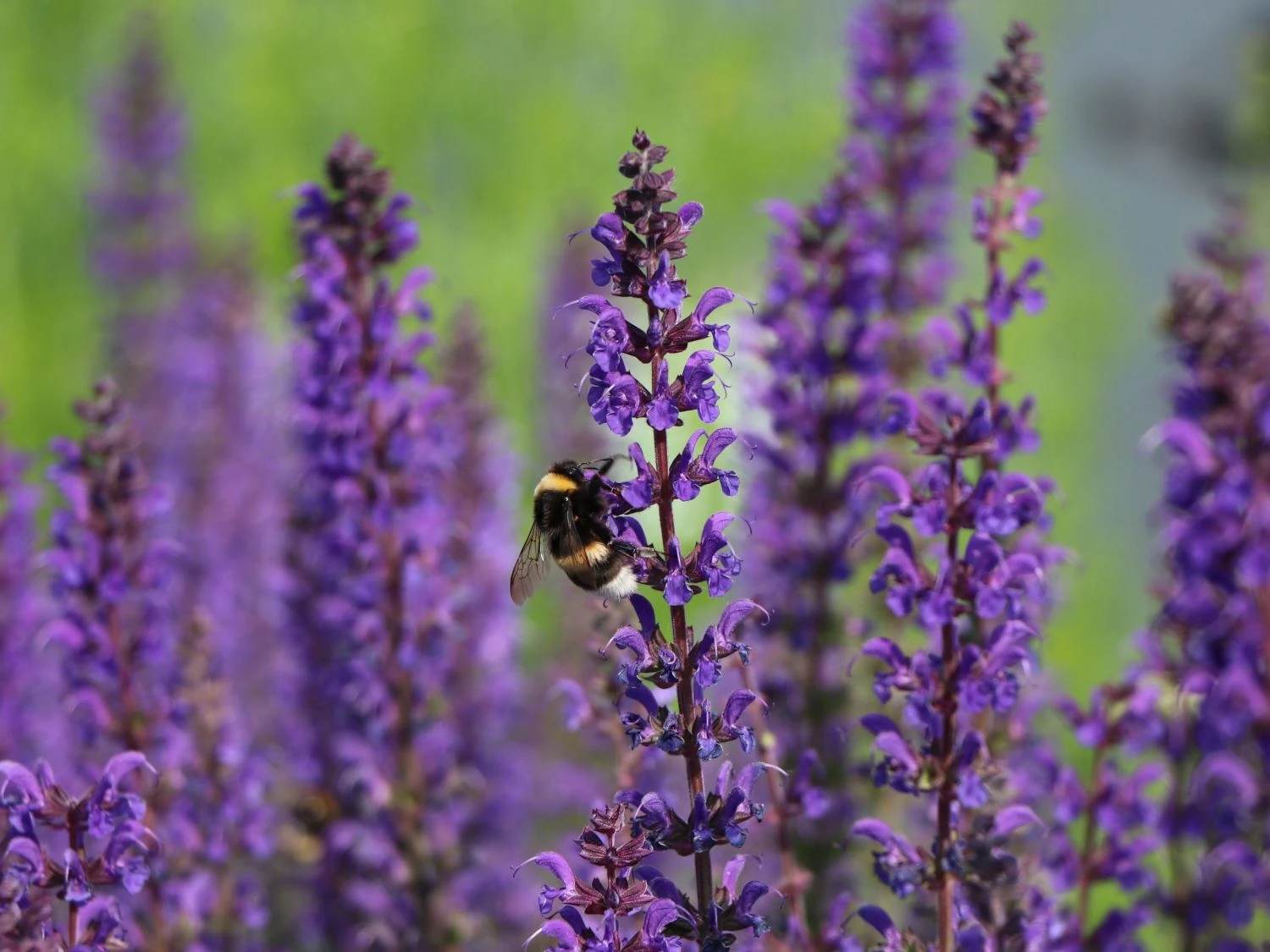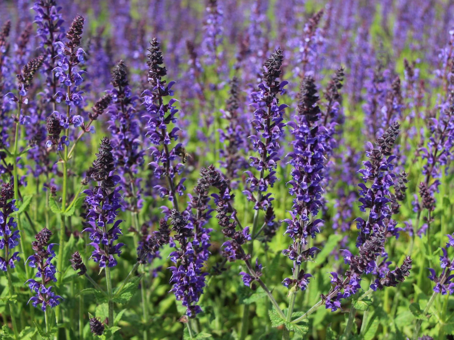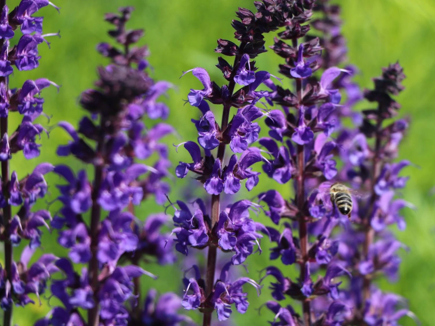 Der Blüten-Salbei ‚Mainacht‘ ist eine aromatische Beetstaude und mit ihren dunklen violett-blauen Blüten ein fantastischer Anblick. Hinzu kommt der wundervolle Blatt- und Blütenduft, der die Nase des Betrachters angenehm umschmeichelt. Nicht nur Menschen finden an dieser Staude großen Gefallen, auch Bienen und Insekten zieht es zu den duftenden Blüten. Sie fungiert somit perfekt als insektenfreundliche Nährpflanze. Die Staude eignet sich wunderbar zum Bepflanzen von sonnigen Beeten. Dort hebt sie sich durch ihre dunkle Blütenfarbe besonders gut hervor und steht im Mittelpunkt. Von Mai bis September zeigen die Blüten ihre ganze Pracht. In Gruppen gepflanzt, entsteht ein dunkles violett-blaues Blütenmeer, das zum Träumen einlädt. Auch in der Rabatte, zusammen mit anderen Stauden, zaubert die Salvia nemorosa ‚Mainacht‘ ein grandioses Bild in den Garten. Als Pflanzpartner eignen sich Sedum, Anemone oder das schöne Federborstengras. Die Staude ist gut als Schnittpflanze geeignet und sieht toll in einer Vase aus. Sie bringt sommerliche Farbe ins Haus und zusätzlich einen wohligen Duft in die Innenräume. Für Naturgärten oder Bauerngärten ist die Staude ebenfalls wunderbar geeignet und macht den gesamten Garten zu einem einzigartigen Kunstwerk.
