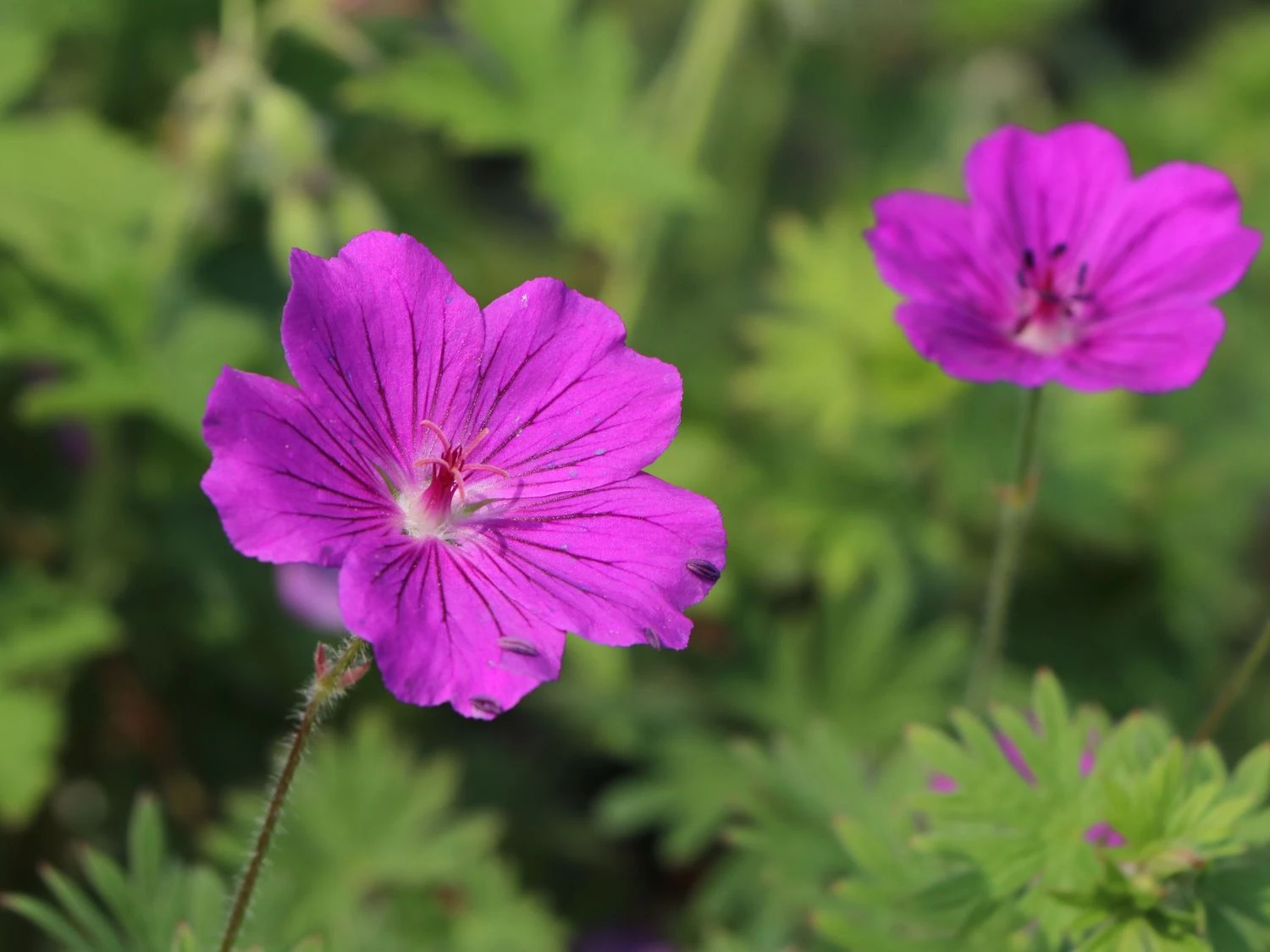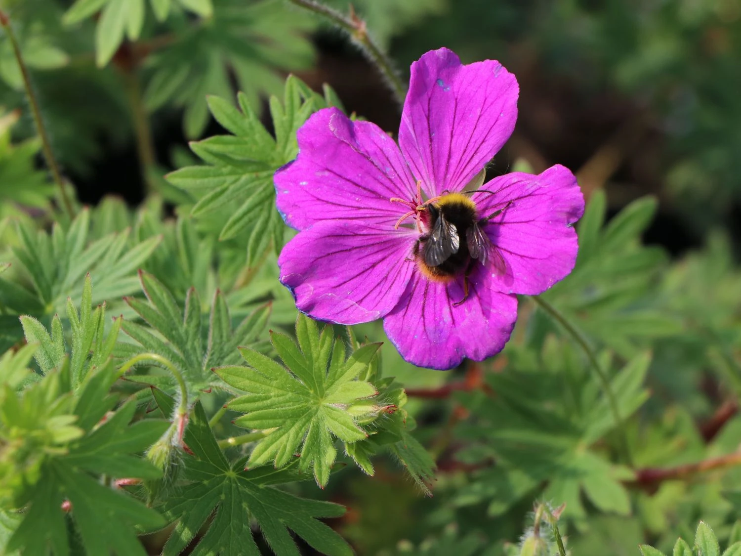 Der Blut-Storchschnabel ‚Tiny Monster‘ lässt aufgrund seiner Wuchsfreudigkeit viele Gartenfreunde aus dem Staunen nicht mehr herauskommen. Mit einer Wuchshöhe von circa 40 cm, ist die Sorte die größte ihrer Art und hat den Namen ‚Tiny Monster‘ wirklich verdient. Besonders gut zur Geltung kommt sie in größeren Staudenbeeten, für kleinere Anlagen ist (bot.) Geranium sanguineum ‚Tiny Monster‘ allerdings weniger geeignet. Besonders für die Bepflanzung von Böschungen und Steingärten ist dieser robuste Storchschnabel zu empfehlen. Der Blut-Storchschnabel ‚Tiny Monster‘ ist vielseitig und kann aufrecht und lagernd wachsen. Seine flachen, einfachen Blüten im purpurroten Farbton sind ein wahrer Genuss. Das Blattwerk der Staude ist tief eingeschnitten, tiefgrün und glatt. Während der Blütezeit stehen die großen Blüten über dem Blattwerk und sind so gut sichtbar. Seinen Namen trägt der Blut-Storchschnabel übrigens nicht wegen seiner Blütenfarbe, sondern aufgrund der rötlichen Herbstfärbung.