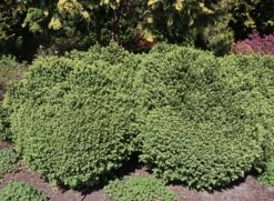 In der Wuchshöhe wie in der Breite erreicht ‚Blauer Heinz‘ 40 bis 50 cm. Mit einem Zuwachs von 4 bis 6 cm im Jahr, lässt er sich viel Zeit mit dem Wachsen. In der Sonne bis Halbschatten lebt er gerne auf normalem Gartenboden. Vielfach findet dieser Buchsbaum seinen Einsatz als einzelnes Ornament in Pflanzgefäßen oder als. Der Buchsbaum ‚Blauer Heinz‘ erlebt als Formschnittgehölz in jüngster Zeit eine Renaissance. Als Element eines formalen Gartens ist der Buchsbaum unverzichtbar. Aus barocken Schlossgärten oder Bauerngärten sind die Pflanzen dieser Art er nicht wegzudenken. Der Buxus sempervirens ‚Blauer Heinz‘ ist ein schwachwüchsiger Buchs. Kompakt wächst der Strauch als Kugel und bleibt das gesamte Jahr hindurch belaubt. Seine blaugrünen Blätter verfärben sich in den Wintermonaten dunkelgrün. Dieser Buchs stellt keine besonderen Ansprüche an den Boden. Diese robuste Pflanze ist winterhart und stadtklima- sowie industriefest. Seine vielfältigen Einsatzgebiete machen den Buxus unwiderstehlich in der Gartenkultur. Als niedrige und hohe Heckenpflanze ist er unverzichtbar. Zum Einfassen von Gräbern und Umranden von Beeten bietet sich dieser Buxus an. Die Pflanze sorgt für dekorative und ansprechende Akzente an jedem Standort. Ob wunderbar in Form gebracht oder als natürliche Kugel, er ziert jeden Standort! Dieser Buchsbaum verlangt dem Gärtner keine Pflege ab. Gemächlich vor sich hin wachsend, zeigt er seine Attraktivität als kleine Hecken- oder Solitärpflanze. Mit leichten Korrekturschnitten ist der Buxus formbar und wird zum dekorativen Ornament im Garten. Nach ausdauernden, sonnigen winterlichen Frostperioden freut sich der Buchsbaum ‚Blauer Heinz‘ über Wasser. An bedeckten Tagen während der Sommerzeit sind Formschnitte am Buxus durchführbar. Bei Hitze und während niederschlagsfreier Perioden verzichtet der Gärtner darauf. Dafür kann der Gärtner die neuen Triebe des Buxus circa um die Hälfte kürzen. Meist reicht ein Schnitt im späten Sommer aus um den Buchsbaum in Form zu halten. Die Sorte ‚Blauer Heinz‘ ist eine natürliche Mutation des Buxus sempervirens ‚Suffruticosa‘. Entstanden ist sie in den Herrenhäuser Gärten in Hannover Herrenhausen. In den 1980er Jahren entdeckte den Buxus ein Gärtnermeister namens Heinz. Auf diese Weise ist sein Name entstanden. Durch seinen extrem langsamen Wuchs, benötigt dieser wertvolle Buchsbaum wenige Rückschnitte. Alle ein bis zwei Jahre reichen aus. Im Einzelstand überzeugt ‚Blauer Heinz‘ als zauberhafte Naturkugel mit wenig Pflegebedarf.
