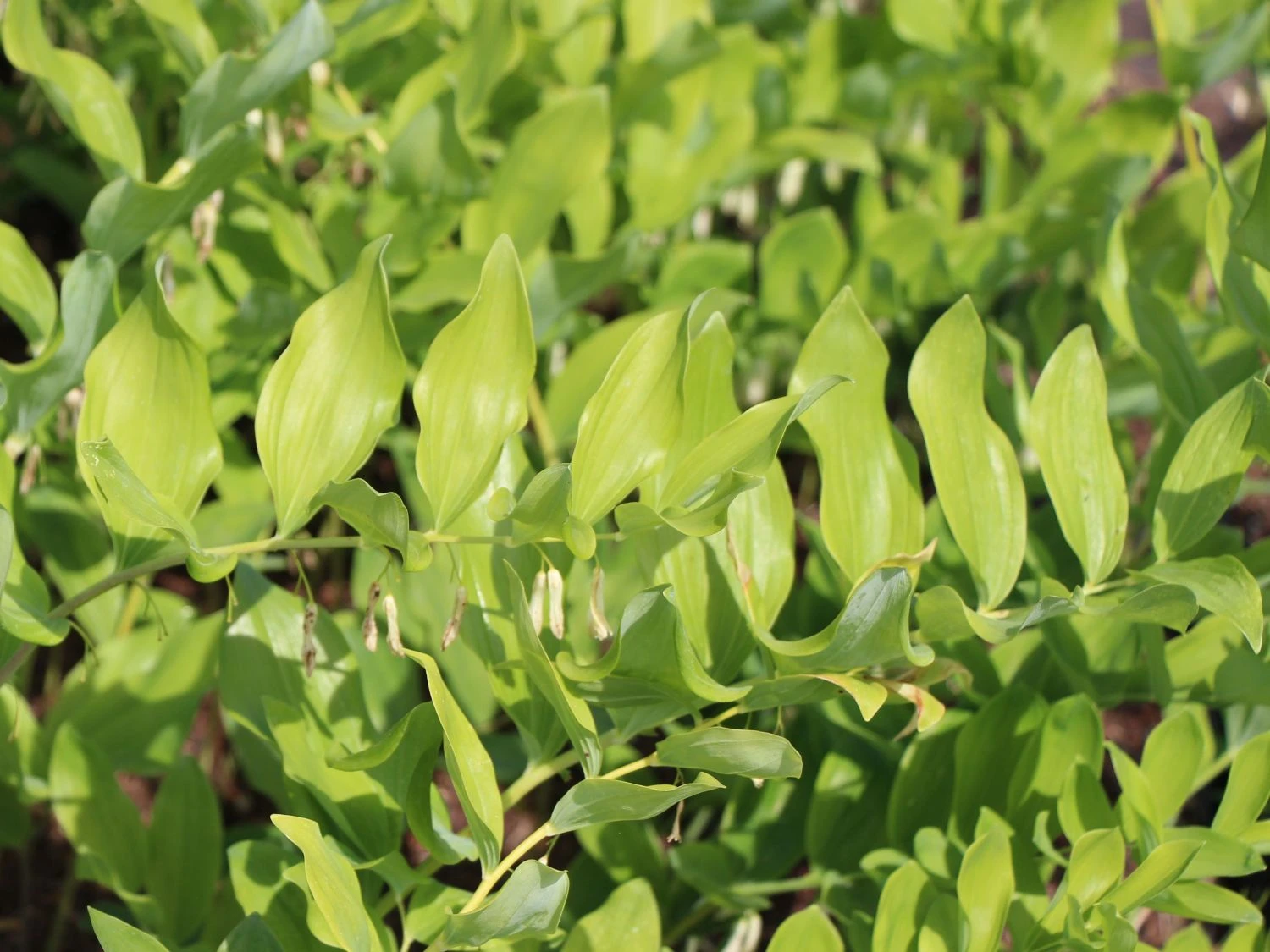 Wenn das Echte Salomonssiegel schließlich sein Laub verliert, kann man genau erkennen, wie die Pflanze zu ihrem Namen kam. Denn wenn der oberirdische Spross abstirbt, hinterlässt er eine siegelähnliche Narbe auf dem Wurzelstock. Polygonatum odoratum kann auch wunderbar in einem sonnigen bis schattigen Bereich im Garten angepflanzt werden. Auf einer Fläche unter altem Baumbestand, auf frischem, humosem Boden fühlt sich das Echte Salomonssiegel recht wohl und breitet sich dann willig aus. Sehr schöne Pflanzpartner sind zum Beispiel Farne, Waldgräser, Hostas oder niedrige Arten von Astilben.