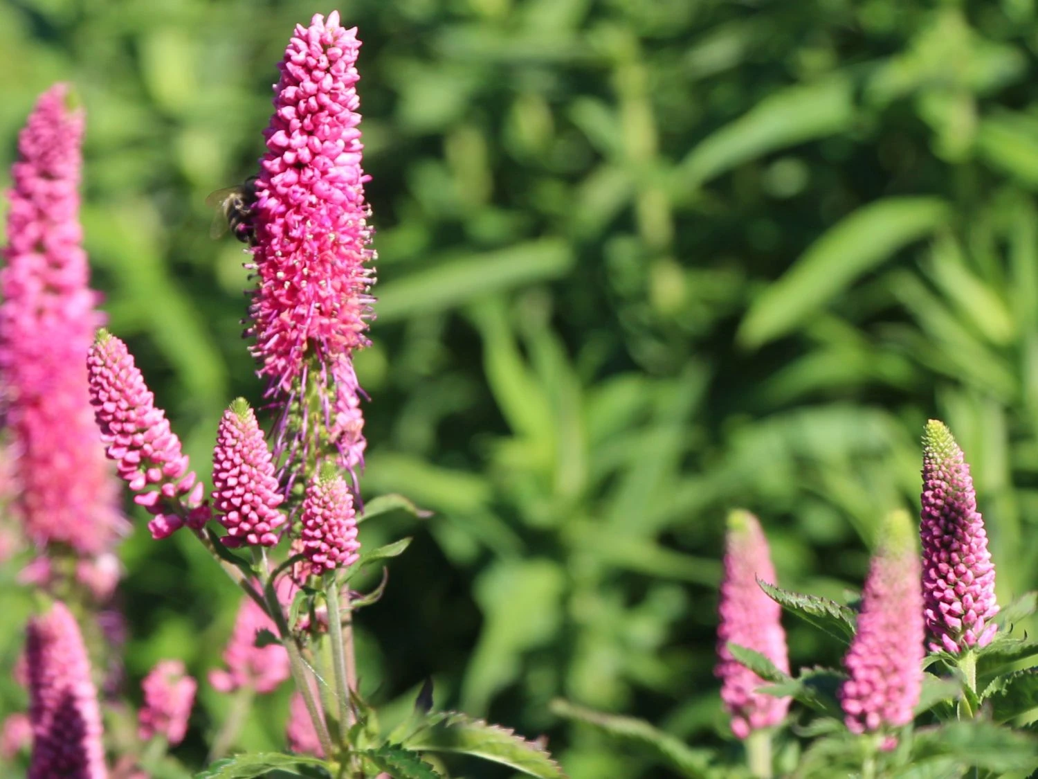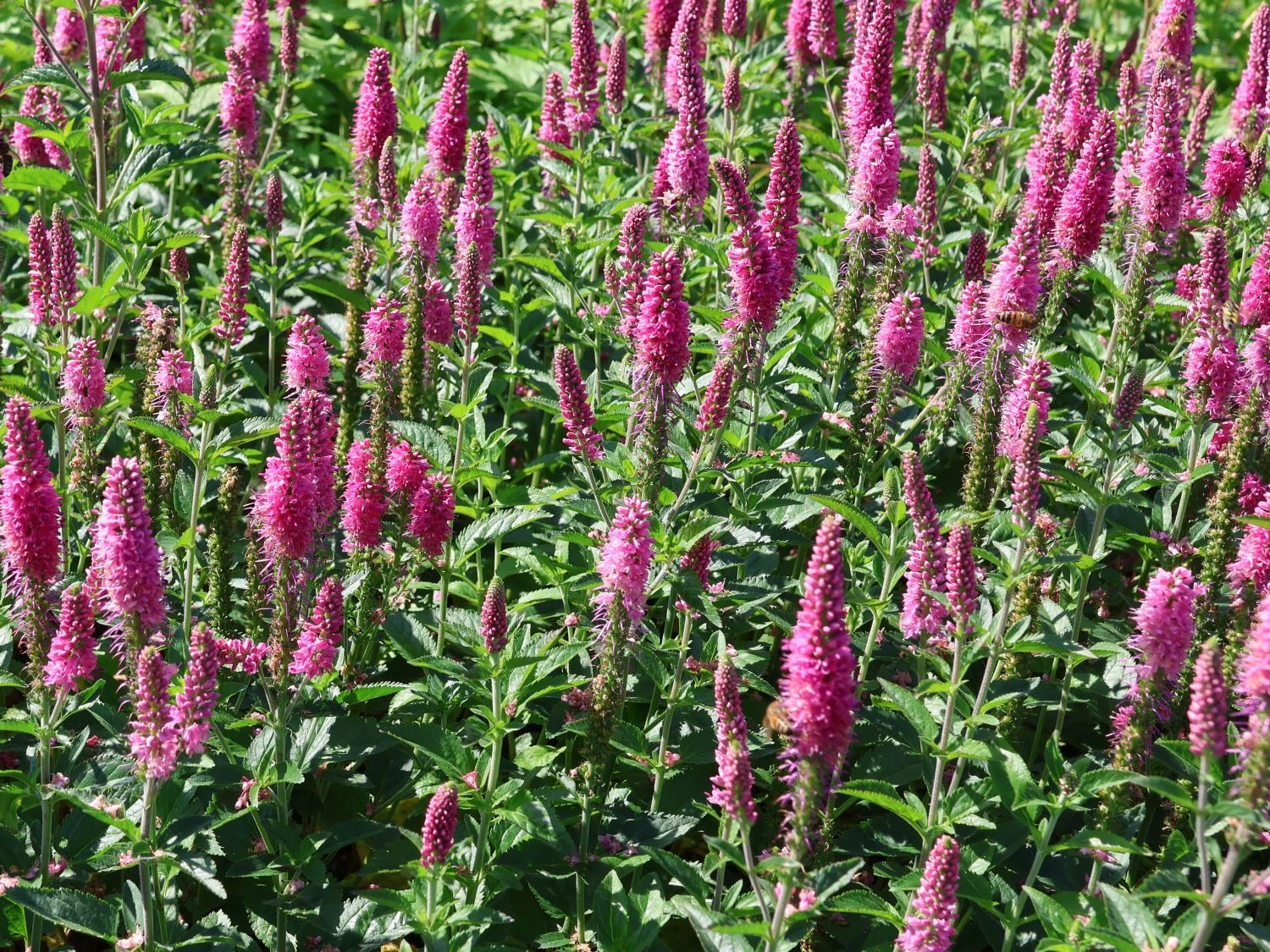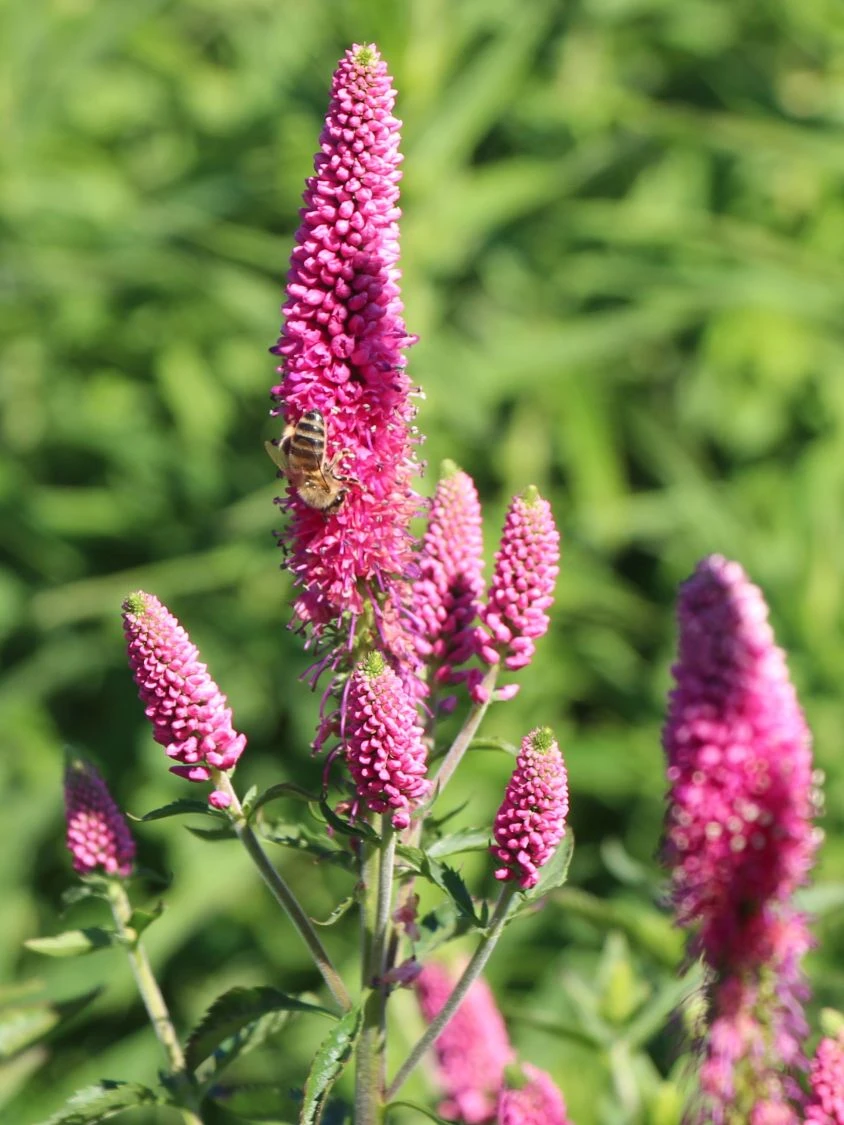 Zauberhafte rosa Blüten im sommerlichen Garten. Zu den vielseitigsten Stauden im Garten gehört der Ehrenpreis. Im herrlichen Hochsommer erscheinen die wunderschönen Blüten des Ehrenpreises ‚First Love‘. Von Juli bis August verströmt die Pflanze Schönheit und Duft gleichermaßen. Bei diesem Anblick schlägt das Gärtnerherz höher! Er ist bei Gärtnern die wohl beliebteste Variante. An einem sonnigen Standort fühlt sich die (bot.) Veronica longifolia ‚First Love‘ am wohlsten. Ein nährstoffreicher, humoser, frischer und gut durchlässiger Boden bietet beste Voraussetzungen für ein gesundes Wachstum. Die Blätter der Pflanze sind lanzettlich zugespitzt mit gesägten Blatträndern. Ihr schönes, grünes Blätterkleid wirft die Pflanze zum Winter ab. Die kleinen Blüten erscheinen ährenförmig. Sie verzaubern mit ihrem fluoreszierenden Rosa. Zudem sind die einfachen Blüten der ‚First Love‘ ein begehrter Landeplatz für vielerlei Insekten. Bienen, Hummeln und Schmetterlinge sind begeistert über das ihnen angebotene Nahrungsangebot. Fleißig sammeln sie Pollen und Nektar der Pflanze und bedanken sich durch eine ausgiebige Bestäubung vieler anderer Pflanzen. Als Bienenweide erfüllt der Ehrenpreis ‚First Love‘ einen großen ökologischen Nutzen im Garten.