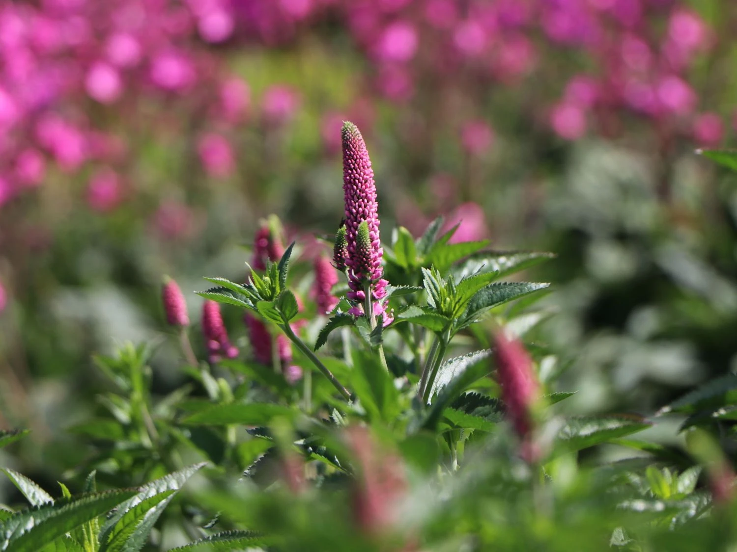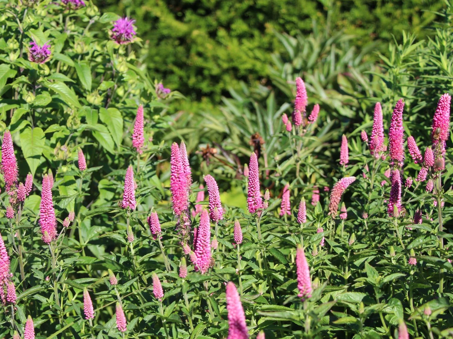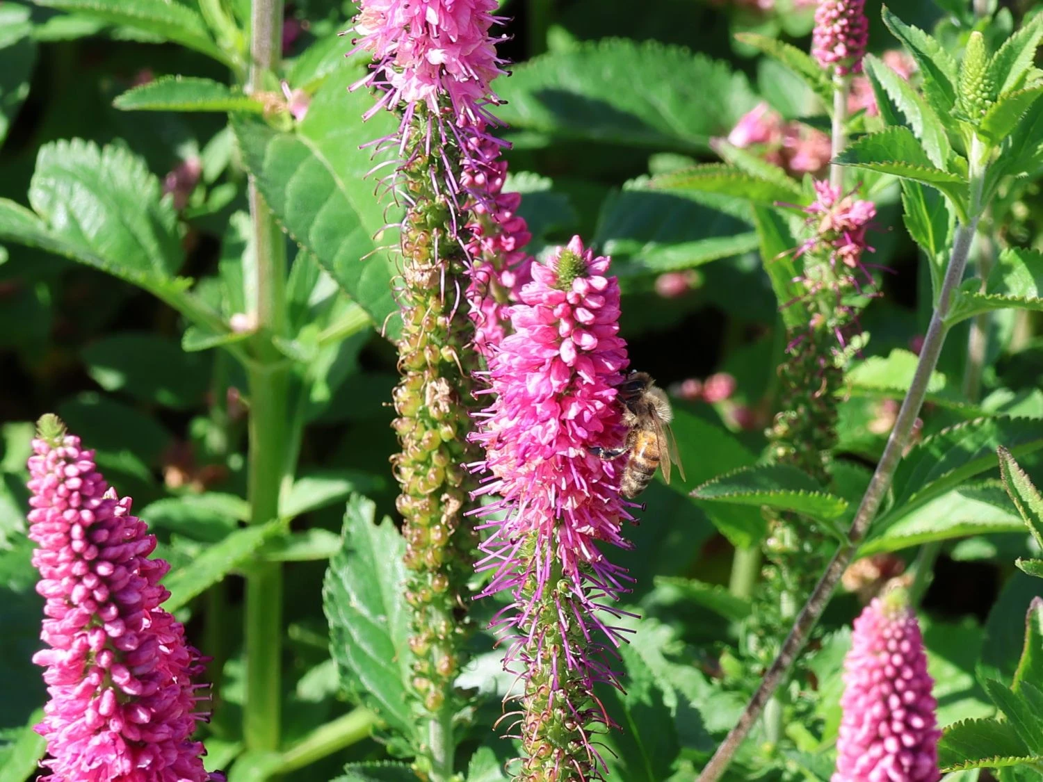 Zauberhafte rosa Blüten im sommerlichen Garten. Zu den vielseitigsten Stauden im Garten gehört der Ehrenpreis. Im herrlichen Hochsommer erscheinen die wunderschönen Blüten des Ehrenpreises ‚First Love‘. Von Juli bis August verströmt die Pflanze Schönheit und Duft gleichermaßen. Bei diesem Anblick schlägt das Gärtnerherz höher! Er ist bei Gärtnern die wohl beliebteste Variante. An einem sonnigen Standort fühlt sich die (bot.) Veronica longifolia ‚First Love‘ am wohlsten. Ein nährstoffreicher, humoser, frischer und gut durchlässiger Boden bietet beste Voraussetzungen für ein gesundes Wachstum. Die Blätter der Pflanze sind lanzettlich zugespitzt mit gesägten Blatträndern. Ihr schönes, grünes Blätterkleid wirft die Pflanze zum Winter ab. Die kleinen Blüten erscheinen ährenförmig. Sie verzaubern mit ihrem fluoreszierenden Rosa. Zudem sind die einfachen Blüten der ‚First Love‘ ein begehrter Landeplatz für vielerlei Insekten. Bienen, Hummeln und Schmetterlinge sind begeistert über das ihnen angebotene Nahrungsangebot. Fleißig sammeln sie Pollen und Nektar der Pflanze und bedanken sich durch eine ausgiebige Bestäubung vieler anderer Pflanzen. Als Bienenweide erfüllt der Ehrenpreis ‚First Love‘ einen großen ökologischen Nutzen im Garten.
