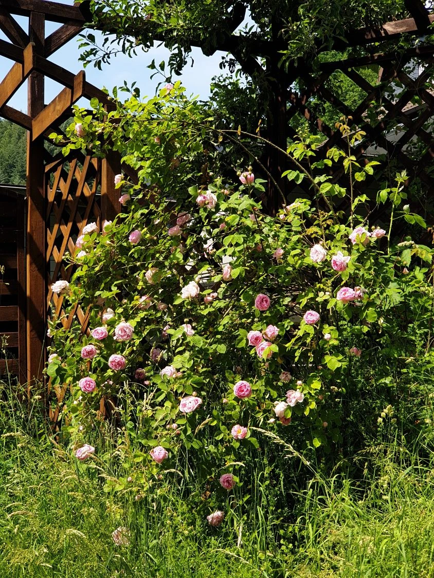 Die Englische Rose ‚Constance Spry‘ glänzt mit zartrosa, stark gefüllten Blüten. Diese wachsen sowohl einzeln als auch in Dolden. Mit ihrem ballonförmigen Aussehen und dem intensiven Rosenduft erzeugen sie einzigartige Eindrücke. In der Zeit von Juni bis Juli blüht die Rose ausgiebig und intensiv. Währenddessen betört sie mit ihrem traumhaften Rosenduft und der ausgeprägten Myrrhenote. Sie wächst kräftig, breit ausladend, buschig und aufrecht. Damit empfiehlt sie sich als Solitär auf einer Freifläche und Gärtner setzen sie als spektakuläre Heckenpflanze ein. Bewehrt und dicht sorgt die Englische Rose ‚Constance Spry‘ für undurchdringliche und gleichzeitig attraktive Grundstücksgrenzen. Ungeschnitten erreicht sie eine Höhe von 200 bis 280 Zentimeter und wächst auf eine Breite von 120 bis 180 Zentimeter. Die (bot.) Rosa ‚Constance Spry‘ toleriert den Halbschatten und ziert Standorte, die andere Sorten lieber meiden. Das Besondere an dieser tollen Rose: Ihre Blüten lassen sich für Rosenrezepte nutzen! In der Zeit zwischen Juni und Juli liegt der fulminante Auftritt der wunderschönen Blüten. Sie sind rosa und am Rand aufgehellt. Diese Sorte treibt ihre zauberhaften, stark duftenden Blüten einmalig im Jahr. Mit ihren großen rosa Ballonblüten und den bogig überhängenden Trieben verleiht die Englische Rose ‚Constance Spry‘ dem Garten einen besonderen Glanz. Es entsteht ein bezaubernder Eindruck: Romantisch und verträumt. Das grau-grüne Laub bildet wunderschöne Kontraste zu den kräftig Blüten. Der Gärtner kommt bei der Rosa ‚Constance Spry‘ nicht ausschließlich optisch auf seine Kosten. Auch die Nase verwöhnt sie mit einem einmaligen Duft. Geradezu betörend wirkt das Aroma dieser himmlischen Rose. Es erinnert an Myrrhe und erfüllt rasch den gesamten Garten.