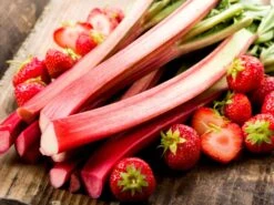 Der Erdbeer-Rhabarber / Himbeer-Rhabarber ‚Frambozen Rood‘ ist eine neue Rhabarber-Sorte aus den Niederlanden. ‚Frambozen Rood‘ ist die niederländische Bezeichnung für „himbeerrot“. Damit weist der Name auf die langen, roten Stiele des Rhabarbers hin, sowie auf den herrlichen Erdbeer- und Himbeer-Duft. Die rotstielige Sorte hat ein grünes Fleisch und begeistert mit einem fruchtigen Geschmack. Rheum rhabarbarum ‚Frambozen Rood‘ hat breite Stiele. Die Schale lässt sich bei Jungpflanzen mitverwerten. Die Pflanze wächst buschig und kompakt. Sie wird maximal 80 Zentimeter hoch. Die Stiele werden bis zu 40 Zentimeter lang. Rhabarber ist ein Gemüse. Es stammt ursprünglich aus Sibirien und kommt in freier Natur bis in China und Burma vor. Die Pflanze gehört zur Familie der Knöterichgewächse und ist mit dem Sauerampfer verwandt. Auffällig sind die sehr großen dunkelgrünen Blätter der Pflanze. Sie sind sehr groß, herzförmig und auffällig gekerbt. Rhabarber ist anspruchslos und frosthart. Rheum rhabarbarum ‚Frambozen Rood‘ erfreut den Gärtner mit hohen Erträgen und den hervorragenden Koch- und Verarbeitungseigenschaften. Das Fleisch der roten Stiele ist zart und eignet sich für die Weiterverarbeitung zu Säften, Kompott, Chutneys oder Kuchenbelägen. Der Gartenfreund schneidet die Stiele zur Ernte nicht ab, sondern dreht sie aus dem Rhizom heraus. Der Erdbeer-Rhabarber / Himbeer-Rhabarber ‚Frambozen Rood‘ ist herrlich vitamin- und mineralstoffreich. Erfrischend wirken die Fruchtsäuren. Sie sind zudem verdauungsfördernd und blutreinigend.