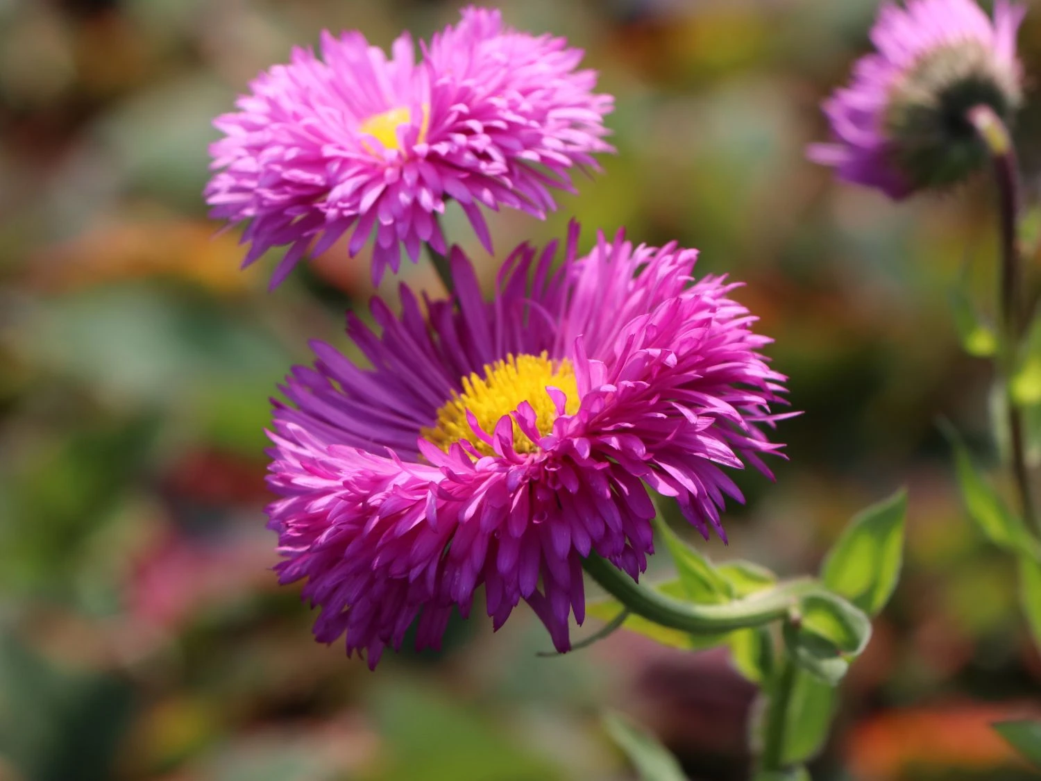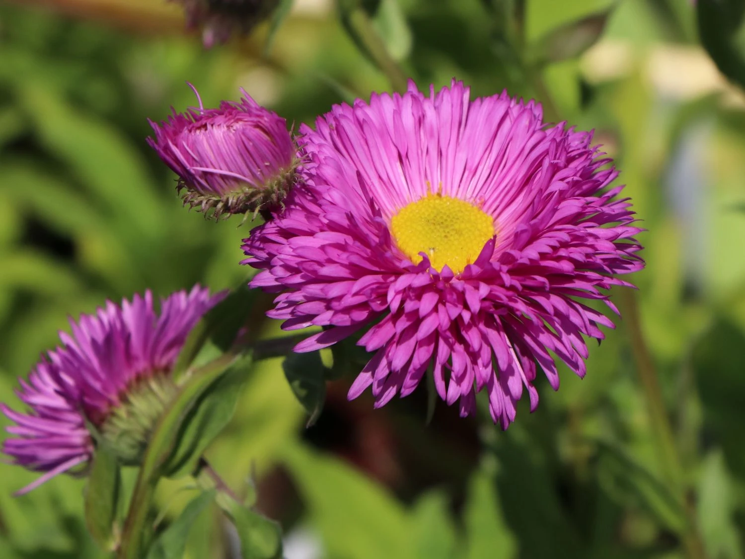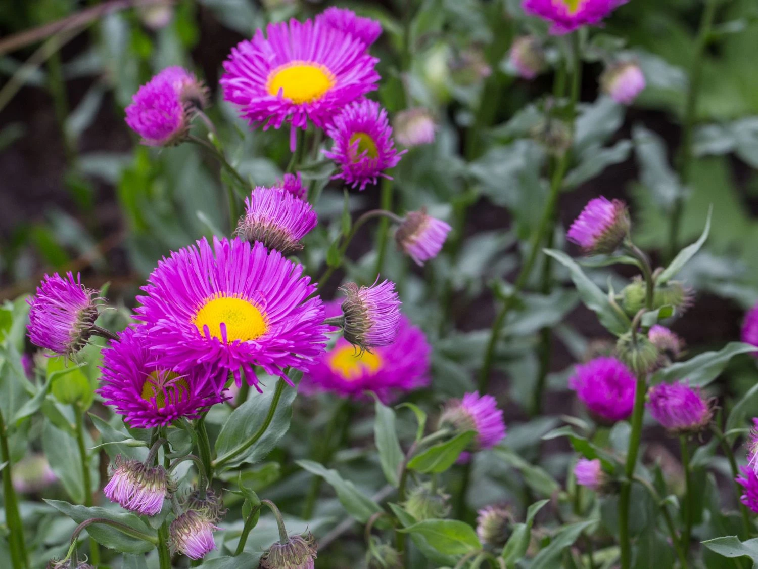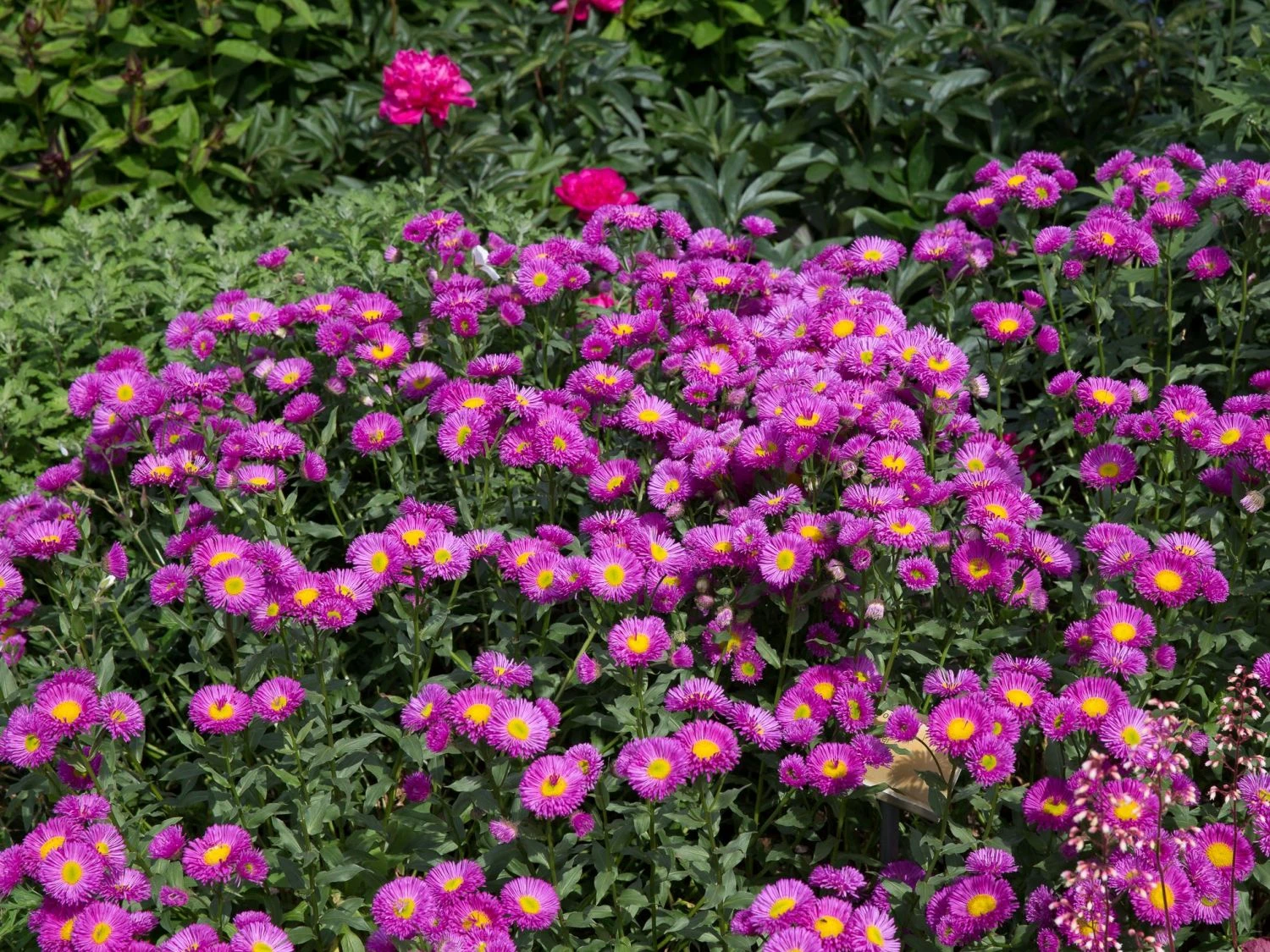 Ebenso attraktiv wirkt eine Kombination mit helleren blühenden Pflanzen. Der Feinstrahl „Rotes Meer“ bringt Farbe ins Spiel und vermeidet, dass im allzu uniformen Blumenbeet Langeweile aufkommt.