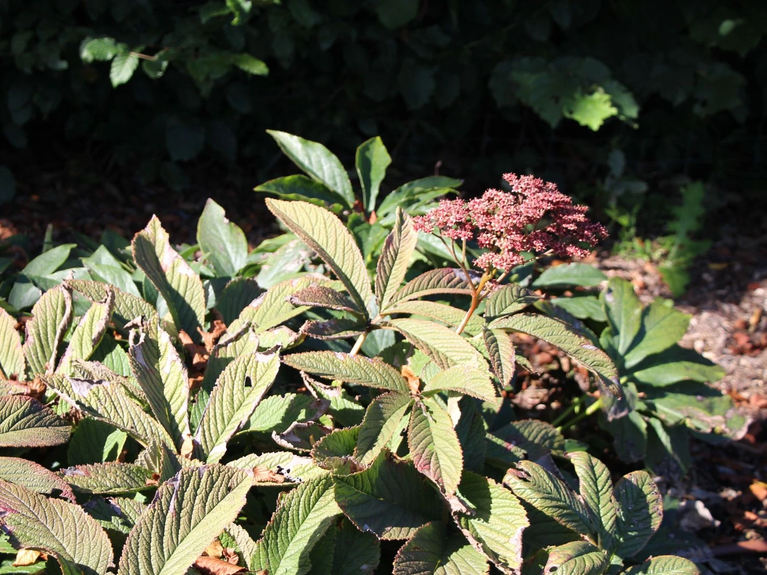 In einem unglaublichen schokoladigen Bronzeton treiben die Blätter des Fiederblättrigen Schaublatts ‚Chocolate Wings‘ ® im Frühjahr aus. Sie fallen durch ihr gefiedertes Äußeres ins Auge. Zur Blütezeit vergrünen die zauberhaften Blätter, um sich im Herbst zurück in ihre ursprüngliche Farbe zu verwandeln. Die im Juni erscheinenden, rosa Blüten mit dunkelrotem Auge, wandeln sich durch den Sommer hindurch zu einem attraktiven Rot. Die unzähligen, einfachen Einzelblüten fügen sich zu Rispen zusammen. Als trichter- bis kelchförmig sind die kleinen Kunstwerke zu beschreiben. Das zauberhafte Schauspiel der Blütezeit dauert bis August. Die aufrecht bis ausladend wachsende Pflanze erreicht eine Höhe von 50 bis 80 Zentimetern. Bei einem Pflanzabstand von 50 bis 70 Zentimetern, pflanzt der Gärtner bis zu vier Pflanzen auf einen Quadratmeter. Rodgersia pinnata ‚Chocolate Wings‘ ® hat einen horstigen Wuchs. Mit seiner Größe eignet sich das rhizombildende Gewächs für das mittlere oder hintere Staudenbeet.