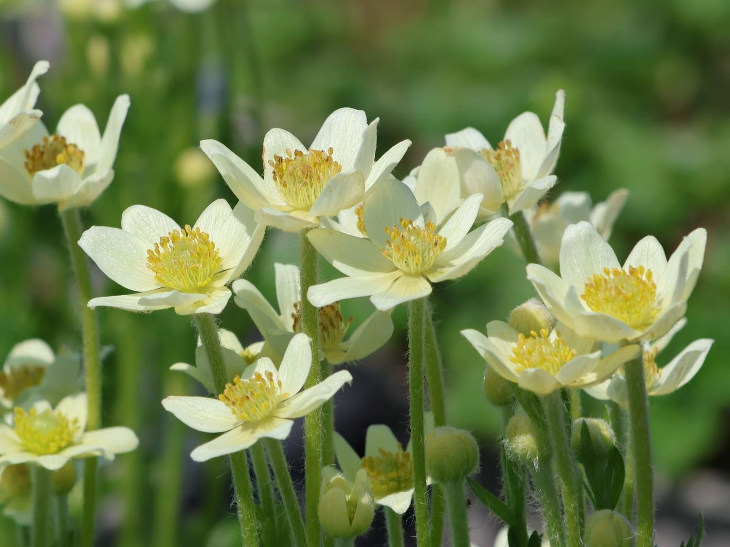 Ihr botanischer Name lautet Anemone multifida ‚Annabella White‘. Ab Anfang Juni entstehen die ersten Blüten, die mit ihrer strahlend weißen Farbe begeistern. Die Blüten sind klein, unter fünf Zentimeter groß. In der Regel bilden sich pro Pflanze viele schalenförmige Blüten aus. Diese kleinen wunderschönen Blüten verströmen keinen Duft. Das erfreut die Allergiker. Dementsprechend kommt die Staude perfekt in größeren Gruppen zur Geltung. In einer solchen Konstellation finden bis zu 25 gepflanzte Exemplare auf einem Quadratmeter Platz. Ideal erweist sich ein Pflanzabstand von mindestens 20 bis 30 Zentimeter. Diese zarte Pflanze ist bis zu -45°C frosthart.