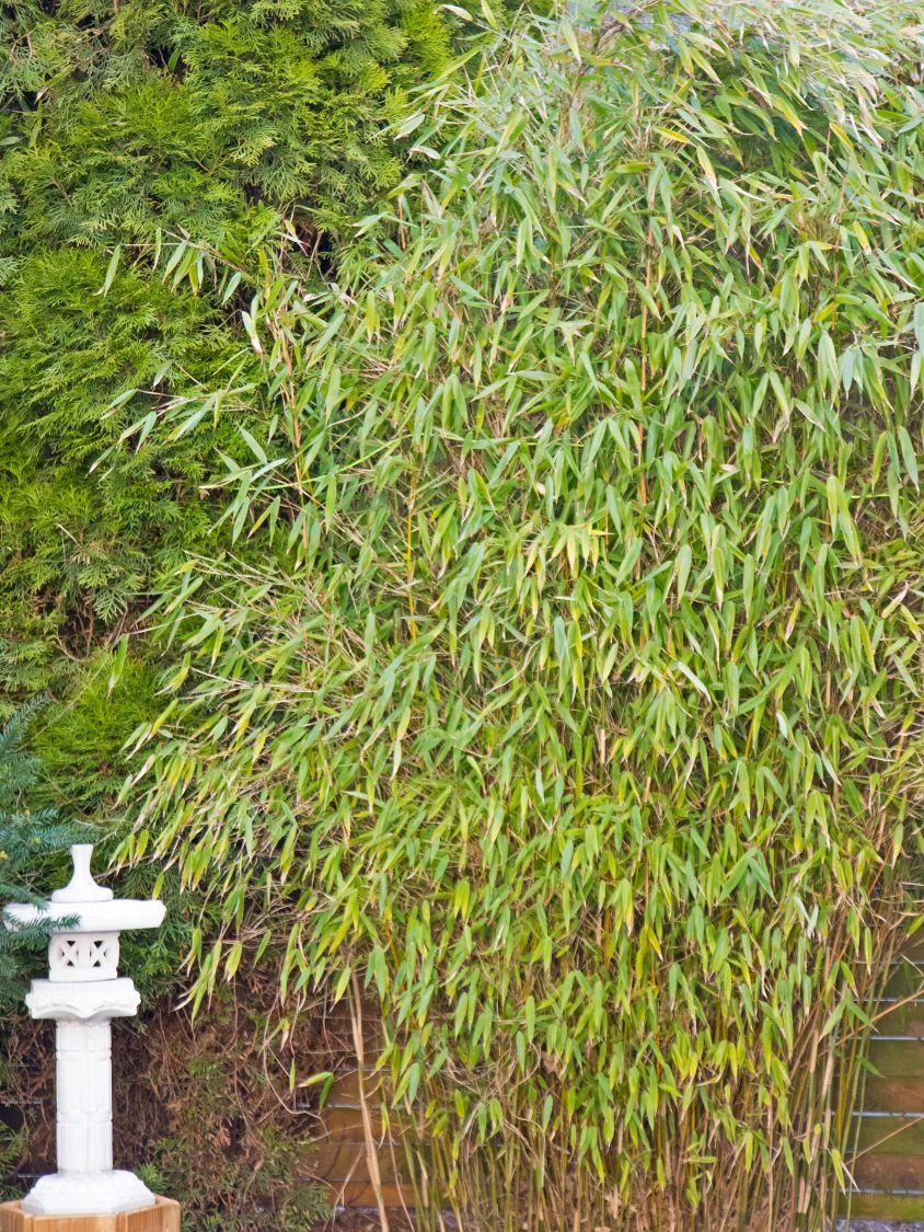Dieses Schmuckstück ist eine im Jahre 1994 entstandene Neuzüchtung aus dem Hause Schütte in Bockhornerfeld im Landkreis Friesland. Der Gartenbambus Fargesia ‚Leasch‘ ®Ⓢ geht aus den Samen der letzten Bambusblüte hervor. Diese eigene Zucht ist seit 2005 europaweit markenrechtlich geschützt und stammt aus der Baumschule Jürgen Schütte. Sie entstand aus einer der blühenden Fargesia murieliae-Sorten. Sie zeichnet sich durch die wunderschönen mittelgroßen, grünen Blätter aus. Im frischen Grün erscheinen die jungen Halme, um später in ein helles Gelb zu wechseln. Das schöne Blattwerk der (bot.) Fargesia murieliae ‚Leasch‘ ®Ⓢ erscheint an dunkelgrünen Halmen. Ein zauberhafter Anblick! Dieses grüne Wunderwerk wächst halb aufrecht und bildet einen dichten Horst. Dabei erreicht der Bambus ohne Rückschnitt eine Höhe von mindestens 250 bis 300 Zentimetern. Im Durchmesser sind ebenfalls mindestens 200 bis 300 Zentimeter zu erwarten. Der Sortenname Leasch leitet sich vom Namen der Tochter des Züchters ab: Lea Schütte. Der Bambus Fargesia murieliae ‚Leasch‘ ®Ⓢ verfügt über durchgängig sortenreine Eigenschaften. Das liegt an der reinen Vermehrung durch Wurzelteilung. Die vegetative Fortpflanzung sichert den Erhalt der besonderen Merkmale dieser wunderbaren Sorte. Zu den positiven Eigenschaften gehört eine dauerhafte Pflanzengesundheit, ausreichende Winterhärte und die Verträglichkeit des Standorts. ‚Leasch‘ ®Ⓢ beeindruckt ihr Umfeld mit halb aufrechtem Wuchs. Im obersten Drittel lässt die Pflanze die Triebe im späteren Verlauf des Wachstums überhängen. Der optimale Standort bietet einen nahrhaften und durchlässigen sowie leicht feuchten Boden. Staunässe und totale Trockenheit sind zu vermeiden. Beides verträgt die Pflanze nicht. Die Fargesien zählen bei vielen Gärtnern zu den bevorzugten Bambussorten. Das liegt an vielen verschiedenen Faktoren. Einer davon ist das nicht wuchernde Wachstum. Eine Rhizomsperre ist nicht erforderlich.