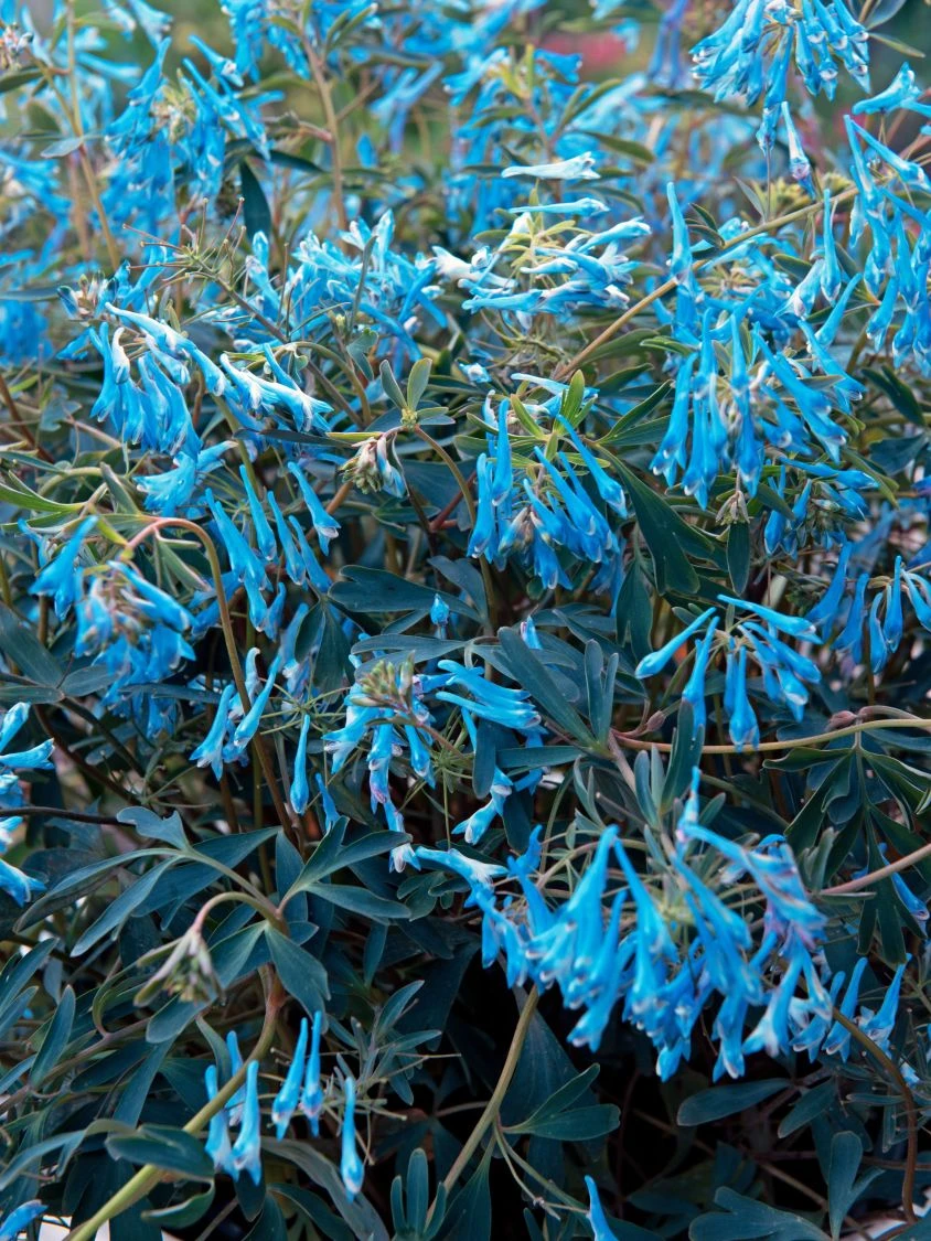 Der Gebogene Lerchensporn ‚Porcelain Blue‘ ist ein himmelblau blühender Lerchensporn mit einer unglaublich langen Blütezeit. Diese blühfreude Neuheit sorgt im schattigen und halbschattigen Gartenbereich für einen unfassbar schönen Farbtupfer. Die Blüten von (bot.) Corydalis flexuosa ‚Porcelain Blue‘ zeigen nicht ein Quäntchen von Grün oder Lavendel, sondern ein tatsächliches und reines Blau. Die hängenden Blüten sind groß in beachtlicher Fülle zu bestaunen. Der Gebogene Lerchensporn ‚Porcelain Blue‘ ist somit nicht nur farblich eine absolute Neuheit, sondern begeistert zudem mit einer hinreißend langen Blühdauer. Die erste Blühphase ist im Frühjahr, die schöne Nachblüte lässt sich im Sommer und Herbst bestaunen.