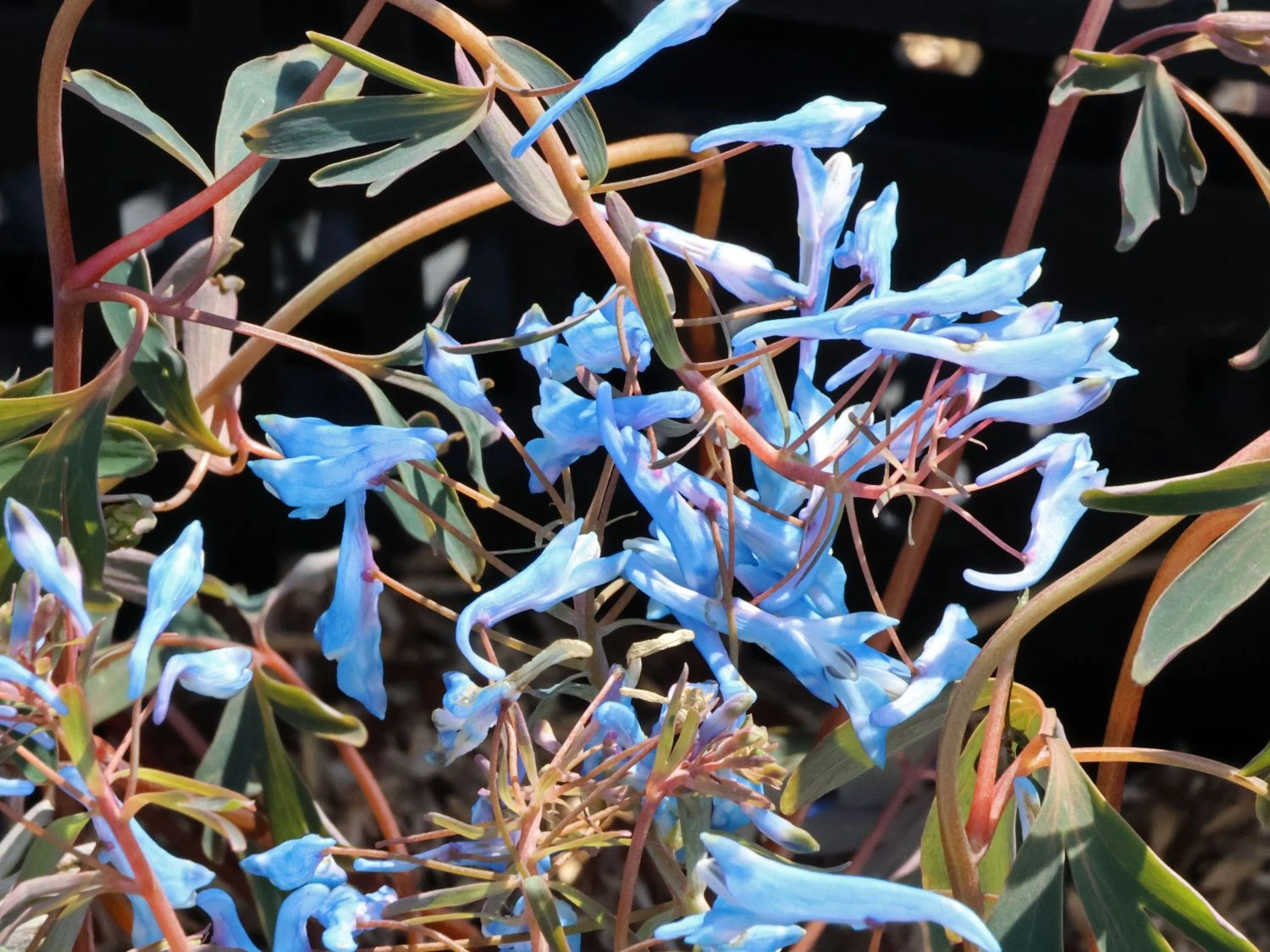 Doch der Gebogene Lerchensporn ‚Porcelain Blue‘ hat noch mehr zu bieten. Den brillant-blauen, röhrenförmigen Blüten entströmt ein süßer Duft nach Honig. Dies entgeht auch Bienen und Hummeln nicht, die den Weg zu der reichen Nahrungsquelle gerne auf sich nehmen, um dort den süßen Nektar zu sammeln. Das Laub bildet einen großartigen Kontrast zu den fantastischen Blüten. Es ist in einem kräftigen Blaugrün und schmückt sich mit bronzenen Akzenten sowohl an den Blättern als auch an den Stängeln. Im Freiland erreicht die schöne Staude eine Höhe und Breite von 30 bis 50 Zentimeter. Der Wuchs ist aufrecht und kompakt. Der Gebogene Lerchensporn ‚Porcelain Blue‘ hat noch eine weitere charakteristische Eigenschaft: Er besitzt die Fähigkeit, selbst unter warmen sommerlichen Temperaturen, weiter zu wachsen und Blüten zu bilden. Um der Pflanze den idealen Boden zu bieten, ist ein lockerer, frischer bis feuchter sowie gut durchlässiger Untergrund zu wählen. Ein lockerer Boden sorgt dafür, dass die Wurzeln zu jeder Zeit mit viel Sauerstoff versorgt sind und überschüssiges Wasser gut abfließt.