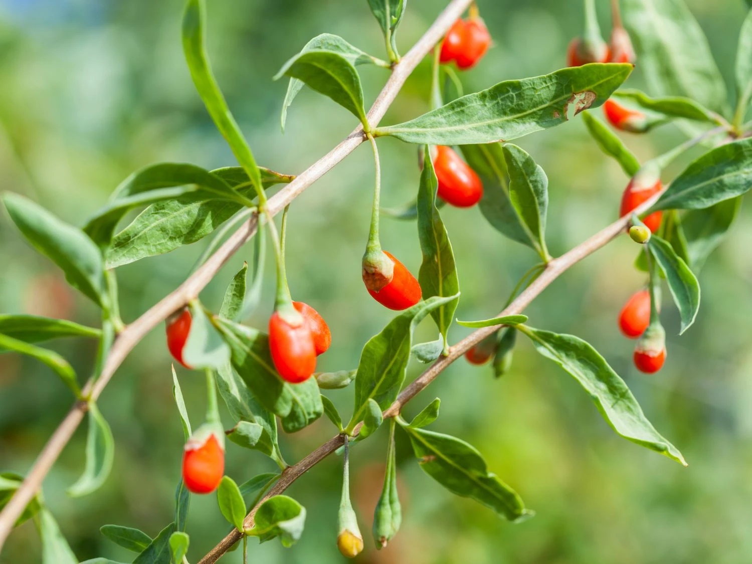 Sogar der sonst so typisch stark wuchernde Wuchs des Chinesischen Bocksdorns, wurde dieser Sorte weitestgehend herausgezüchtet. Ideal steht Lycium barbarum ‚No.1 Lifeberry ®’ein einem sonnigen bis halbschattigen Standort und freut sich über einen lockeren, nährstoffreichen und gut durchlässigen Gartenboden. Insgesamt zählt sich Goji-Beere / Teufelszwirn ‚No.1 Lifeberry ®‘ zu den eher anspruchslosen, schnittverträglichen, pflegeleichten und winterharten Gartenpflanzen. Als großer Strauch wächst die Pflanze im Garten auf 200 bis zu 300 cm heran. Dabei ist der Wuchs recht üppig, aufrecht, buschig und locker ausgeprägt. Um die Pflanze gut in Form zu halten, kann sie jedes Jahr großzügig geschnitten werden. Die Pflanze ist laubabwerfend, trägt grünes bis leicht gräuliches Laub, welches schmal, klein und filigran wirkt. Auch in einem Kübel gesetzt, kann die Goji-Beere / Teufelszwirn ‚No. 1 Lifeberry ®‘ einen äußerst mediterranen Charme versprühen und auf Terrasse oder Balkon attraktiv sein.