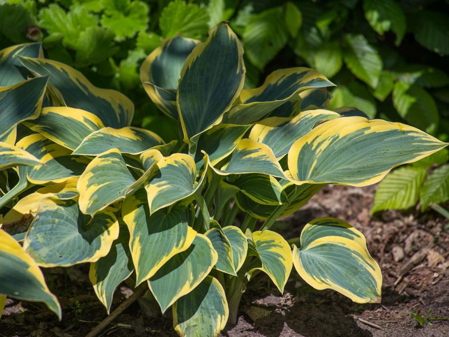 Die zur Familie der Hostaceae gehörende Staude hört umgangssprachlich bzw. im allgemeinen auf den Namen „Hosta“. Ein jeder Pflanzenliebhaber wird sie unter diesem Namen kennen. Doch die Goldrand-Funkie ‚First Frost‘ bringt ganz besondere Vorzüge mit sich und macht dabei ihrem Namen alle Ehre. Die Pflanze wird im lateinischen Hosta hybr. ‚First Frost‘ genannt, was ihre botanische Bezeichung in der Pflanzenwelt ist. Botaniker, Fachleute und Gärtner werden die schöne Staude meist nur mit dem Namen benennen, so können nämlich Verwechslungen am besten ausgeschlossen werden. Doch wie sollte man so eine auffällig schöne Pflanze verwechseln. Bei der Hosta hybr. ‚First Frost‘ ist das so gut wie unmöglich.