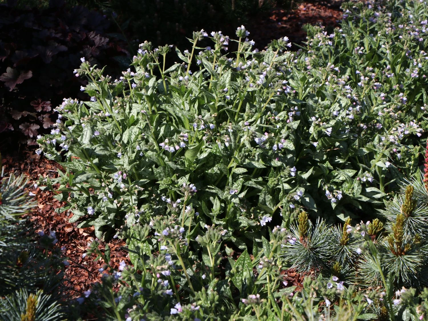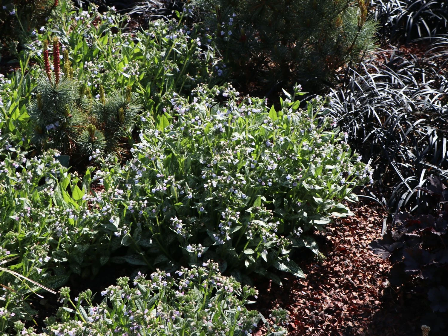 Das Großgefleckte Lungenkraut ‚Opal‘ ist eigentlich eine recht kleine und fast unscheinbare Pflanze, doch kann diese vor allen Dingen mit einer guten Idee beim Bepflanzen schnell sehr dominant und anziehend im eigenen Garten werden. Besonders in Gefäßen kann das Großgefleckte Lungenkraut ‚Opal‘ überzeugen, doch spielt sich der vorhandene Wuchs vor allen Dingen in der so genannten Gruppenbeflanzung in einem Beet aus, bei welchem dieser vollkommen zu überzeugen versteht. Dabei kommt dieser Verwendung der dichte und teppichartige Wuchs sehr entgegen, womit eine einheitliche Fläche geschaffen werden kann.