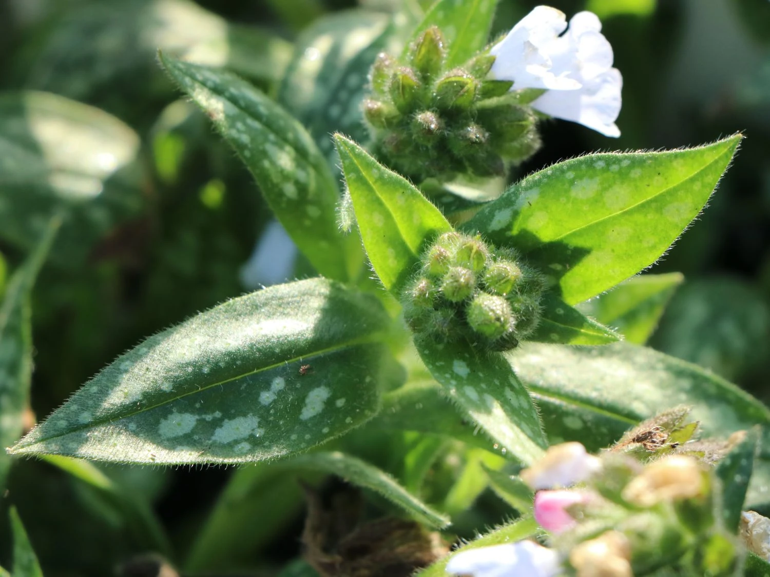 Die Pulmonaria Saccharata Opal bietet zudem viele kleine Details. Interessant ist nämlich auch, dass nicht nur in der Blütezeit im April und Mai diese Staude vollkommen zur Geltung kommen kann, sondern dass diese hervorragend als Bodendecker mit besonderer Leuchtkraft das ganze Jahr über genutzt werden kann. Der teppichartige Wuchs um Zusammenspiel mit dem dunkelgrünen Laub erlaubt es auch außerhalb er Blütezeit der Pflanze einen tollen Anblick genießen zu können, welcher auch an Orten und Flächen mit sehr viel Unkrautdruck eingesetzt und verwendet werden kann.
