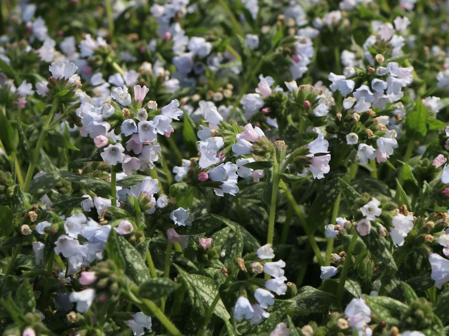 Dezent aber dennoch in der Gruppe sehr auffallend. Für das Großgefleckte Lungenkraut ‚Opal‘ kein Problem. Besonders der sich abzeichnende Kontrast zwischen dem dunkelgrünen Laub in lanzettlicher Form der Blätter mit den trichterförmigen hellblauen Blüten ergibt einen Anblick, welcher sich an unterschiedlichsten Positionen im eigenen Garten sehr gut macht und jederzeit zu überzeugen versteht. Das beim Pflanzen des Pulmonaria Saccharata ‚Opal‘ zudem für den Gärtner eine große Auswahl vorhanden ist liegt auch am gewünschten Standort. Von Halbschatten bis Schatten kann das Großgefleckte Lungenkraut ‚Opal‘ gepflanzt werden, so dass neben einer Terrasse wie auch beispielsweise neben dem Eingang des Gartens diese Einfachstaude sehr zu ihrer Geltung kommen kann. Hinsichtlich der Pflege gilt es ebenso Entwarnung zu geben, denn die Staude ist eine eigenständige Pflanze, welche durch ihren dichten Wuchs wenig Pflege benötigt. Wichtig beim Pflanzen ist nur ein frischer und zugleich nährstoffreicher Boden, so dass das Großgefleckte Lungenkraut ‚Opal‘ sich bestens entwickeln kann.