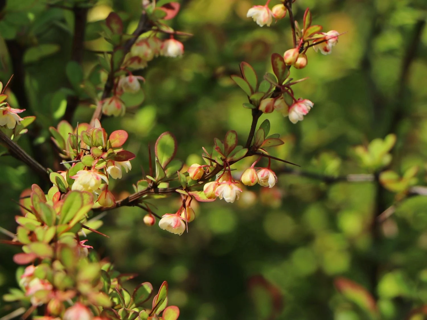 Die Grüne Heckenberberitze wächst dicht verzweigt, straff aufrecht und bedornt. Eine Länge von fünf bis 15 Millimeter haben die einzelnen Blattdornen an den Zweigen. In der Zeit von Ende April bis Mai zeigt sich die Pflanze außerordentlich blühfreudig. Meist einzeln oder zu zweit gebüschelt, erscheinen die muschelähnlichen, kleinen Blüten. In einem blassen Gelb, außen rötlich, verzaubern sie mit ihrer fröhlichen Frühjahrsfrische. Die zierlichen Blüten der Berberis thunbergii bieten ein reiches Nahrungsangebot für Bienen. Diese schöne Pflanze zeigt sich mit ihrem prachtvollen sommergrünen Laub. Ihre Blätter sind verkehrt eiförmig und ganzrandig. Etwa einen bis drei Zentimeter lang, sind sie auf der Oberseite hellgrün und auf der Unterseite bläulich-grün. Nach dem Sommer leuchtet das Laub von orange bis hin zu karminrot. Einen wunderschönen bunten Eindruck vermittelt das Gehölz damit. Diese fröhlichen und bunten Blätter sind ein absoluter Blickfang. Zu dieser Zeit erscheinen längliche hellrote Beeren. Die säuerlichen und saftigen Früchte dieser Berberitze gelten als essbar. An den Hecken bleiben sie oftmals bis in den Winter hinein haften.