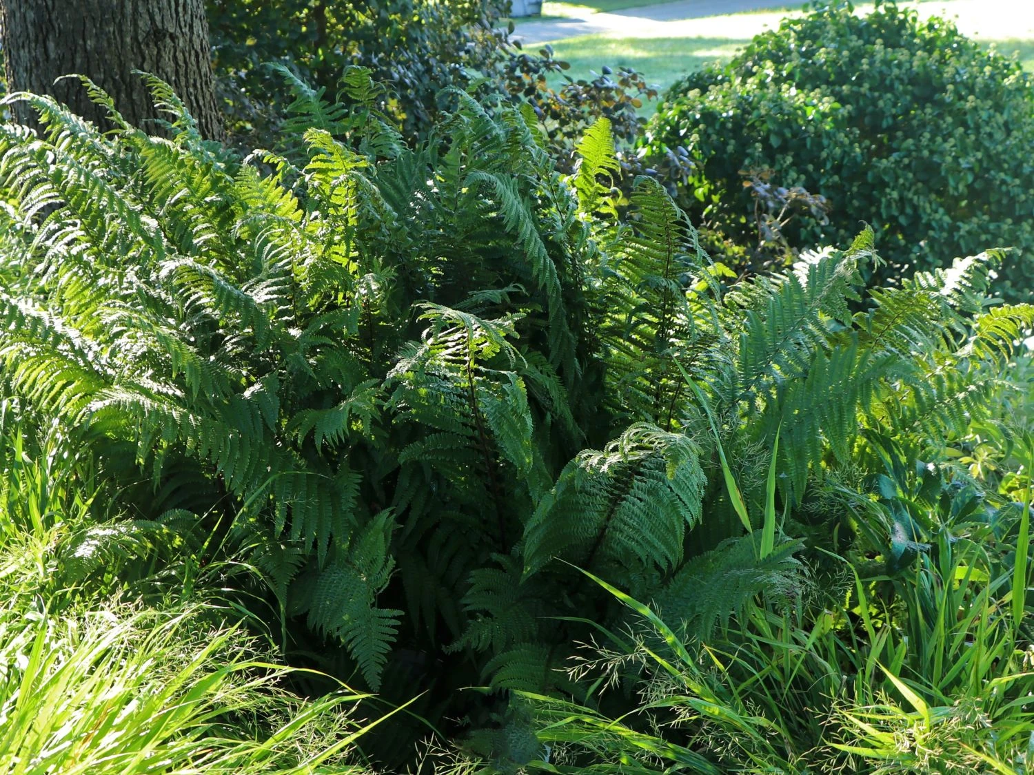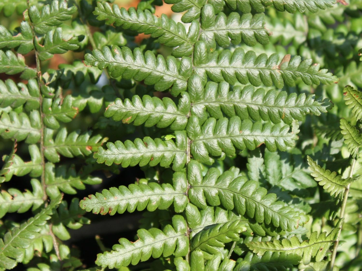 Der Heimische Goldschuppenfarn behält im Winter sehr lange seine grüne Farbe und weist beim Austrieb auf seinen Stielen goldbraune Spreuschuppen auf.
