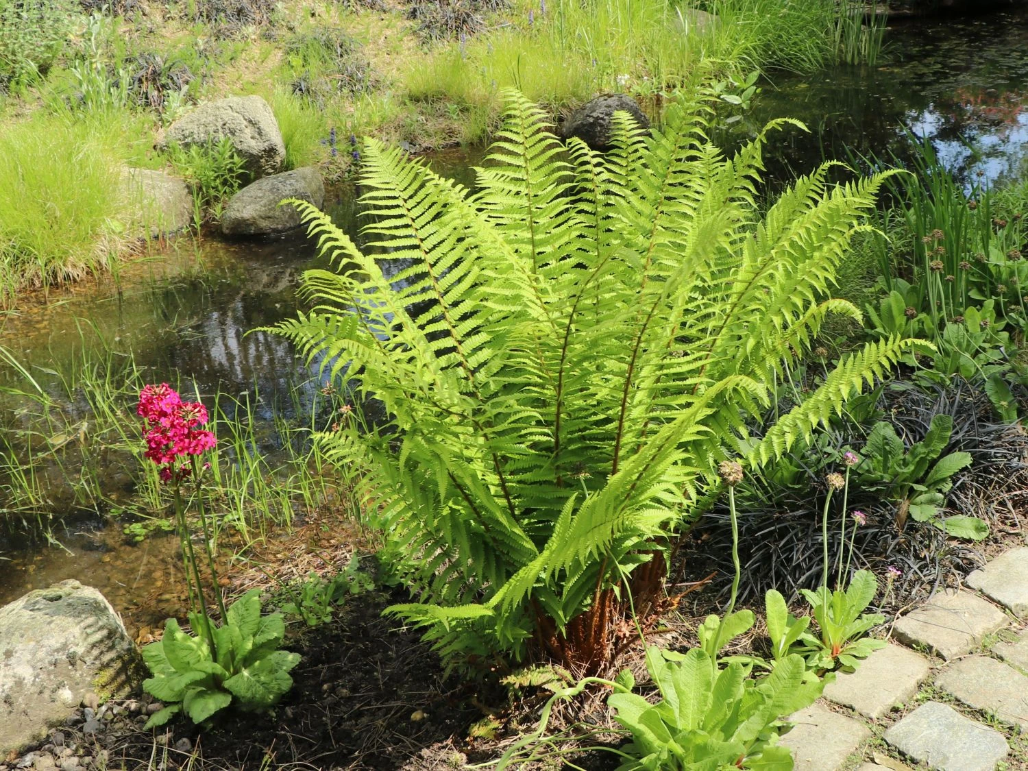 Interessant ist die Veränderung der Blattfarbe im Laufe der Entwicklung innerhalb eines Jahres. Die jungen, noch eingerollten Triebe sind zunächst bräunlich. Die kräftige grüne Farbe tritt erst hervor, wenn das Blatt sich im Zeitlupentempo entrollt. Zum Winter bleiben die Blätter stehen, verblassen und zeigen sich eher gelbgrün, bevor sie im nächsten Jahr absterben und frischen Trieben Platz machen. Gepflanzt wird vorzugsweise im Frühjahr oder Herbst. Dabei achtet der Gärtner darauf, dass die Rosette der geschlossenen Triebe noch erkennbar aus dem Boden herausschaut. Anfangs benötigt der junge Farn regelmäßige Wassergaben. Weitere Pflege ist kaum notwendig. Am optimalen, stark humosen, nicht zu nassen Platz benötigt die Pflanze keinen Dünger. Sie entwickelt sich bald zu einem kräftigen Busch von bis zu 80 Zentimetern Durchmesser. Der heimische Wurmfarn gilt als äußerst robust. Die meisten Schädlinge und Krankheiten machen einen großen Bogen um ihn. Ideal ist ein halbschattiger bis schattiger Standort. Hier eignet sich ein Gehölzrand oder ein Platz im Schatten einer Mauer oder eines hohen Baumes. Besonders gut kommt der Heimische Wurmfarn in der Einzelstellung oder in kleinen Gruppen zur Geltung. In dieser Position entfalten sich seine langen, doppelt gefiederten Blätter optimal und präsentieren sich in ihrer ganzen Schönheit. Der heimische Wurmfarn liebt seine Ruhe. Es ist keine Teilung und kein Rückschnitt nötig. Neue Blätter überwachsen die alten und entwickeln sich zu hochwertigem Humus. Kübelbepflanzung ist möglich. Hier wünscht sich der Heimische Wurmfarn im Winter einen Kälteschutz aus Vlies oder Tannenzweigen.