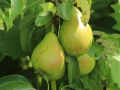 Um eine gute Ernte zu erzielen, ist der richtige Standort für die Herbstbirne ‚Condo‘ zu wählen. Bevorzugt steht der gut winterharte Kleinbaum in einem sonnigen bis halbschattigen Bereich auf locker-lehmigem Boden. Pyrus communis ‚Condo‘ wächst aufrecht, gut verzweigt und kegelförmig zu einer Höhe von 200 cm sowie zu einer Breite von etwa 150 cm heran. Der jährliche Zuwachs beträgt rund 20 bis 30 cm. Bei Bedarf ist ein jährlicher Rückschnitt im Zeitraum von Januar bis Februar durchführbar. Die eiförmigen Blätter sind wechselständig angeordnet und erreichen eine Länge von 4 bis 8 cm. Das schöne Mittelgrün der glänzenden Blätter der Herbstbirne ‚Condo‘ intensiviert sich im Herbst zu einem warmen Orangegelb. Die Früchte erreichen ab Oktober ihre volle Geschmacksreife. Das gelbweiße Fruchtfleisch hat eine mittelfeste Konsistenz und ist von einer glatten gelbgrünen Schale umgeben. Die Früchte eignen sich zum direkten Frischverzehr und sind beliebt für die Weiterverarbeitung zu Kompotten, Säften, Likören oder köstliche Süßspeisen.