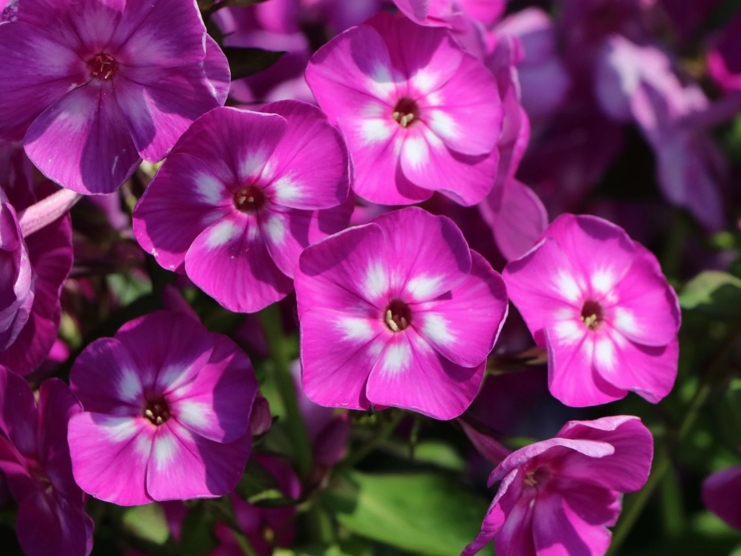 Die Staude Phlox paniculata ‚Purple Kiss‘ zeigt sich während der Blütezeit mit ihren kuppelförmigen Blüten in einer violett-purpurnen Blüte, die zusätzlich mit einem weißen Auge verziert ist. Die attraktive Sommerstaude sieht nicht nur im Garten herrlich aus, sie eignet sich durchaus auch als Schnittblume. Umgeben von Schmetterlingen während der Blütezeit wird sie vom Betrachter schon von Weitem als farbiger Tupfer im Garten wahrgenommen. Als Standort benötigt die Flammenblume einen Platz an der Sonne, wobei frische und durchlässige sowie nährstoffreiche und humose ihr Wachstum fördern. Auf Rabatten, im Vorgarten oder auch als Einzelstellung kann die Flammenblume sich auch im Halbschatten prächtig entwickeln.