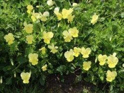 Das Hornveilchen / Gehörnte Stiefmütterchen ‚Beshlie‘ trägt hellgelbe Blüten auf langen Stängeln. Dabei mischt sich gelegentlich etwas Violett bis Rosa in den oberen Teil der Blüte, was einen besonders hübschen Kontrast ergibt. Benannt ist die Form ‚Beshlie‘ nach der britischen Autorin und Illustratorin gleichen Namens. Mit ihrem Ehemann, dem Autor Dominic Reeve, beschrieb sie in einigen Büchern das Leben der britischen Zigeuner, den Romanchials. ‚Beshlie‘ und ihr Mann führen selbst ein Leben als Nomaden und sie soll das Hornveilchen / Gehörnte Stiefmütterchen ‚Beshlie‘ auf ihren Reisen entdeckt haben, weshalb es ihren Namen trägt. Horn-Veilchen sind als Abkömmlinge eines Gebirgsbewohners recht robust.