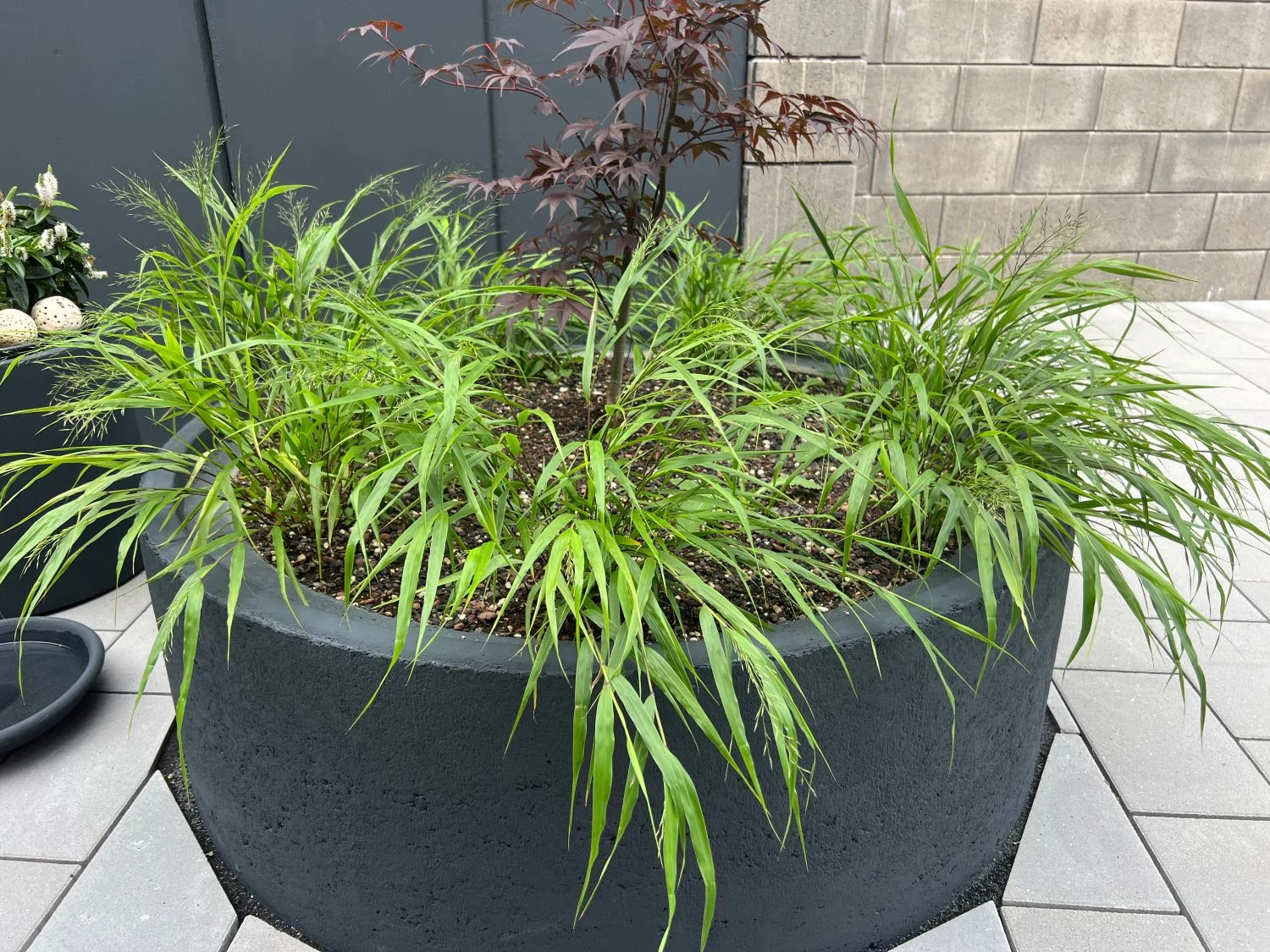 In Gruppen gesetzt, hat das Japangras eine einzigartige harmonische Fernwirkung, die an wogende Wellen erinnert. Die ästhetische Optik lässt sich durch passende Nachbarpflanzen weiter steigern: Ein fantastischer Blickfang ergibt sich in der Kombination mit Traubenlilie, Elfenblume, Farn, Funkie oder Schwarzem Schlangenbart. Hervorragende Pflanzpartner sind außerdem Rhododendron, Azalee und Bambus. Empfehlenswert ist es, nicht mehr als vier Pflanzen von Hakonechloa macra pro Quadratmeter zu setzen. Ein Pflanzabstand von 40 cm ist perfekt für das Japan-Zwergschilf. Anfänglich ist es bedingt winterhart und benötigt Schutz vor zu starken Frösten. Hierfür eignen sich Reisig oder eine Laubschicht. Der sorgsame Gärtner schneidet das Japan-Berggras erst im Frühling zurück, da das vertrocknete Laub die Pflanze im Winter zusätzlich schützt. Kommen die ersten Triebe im Frühjahr zum Vorschein, ist eine vegetative Vermehrung der Staude durch Teilen möglich. Hat das Japanische Berggras im Garten Fuß gefasst, ist es pflegeleicht und robust. Für eine Gartengestaltung im japanischen Stil ist dieses Ziergras ein unverzichtbarer Bestandteil. Einen exklusiven asiatischen Touch verleiht es Terrasse oder Balkon als Kübelpflanze. Das Japan Berggras ist ein fantastischer Blickfang in jedem Garten!