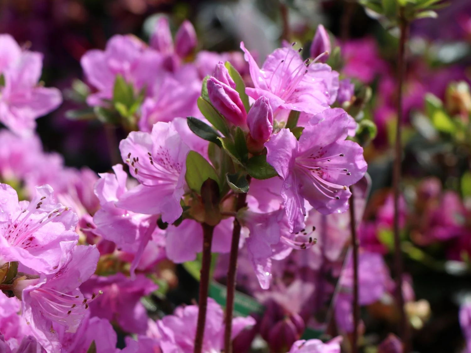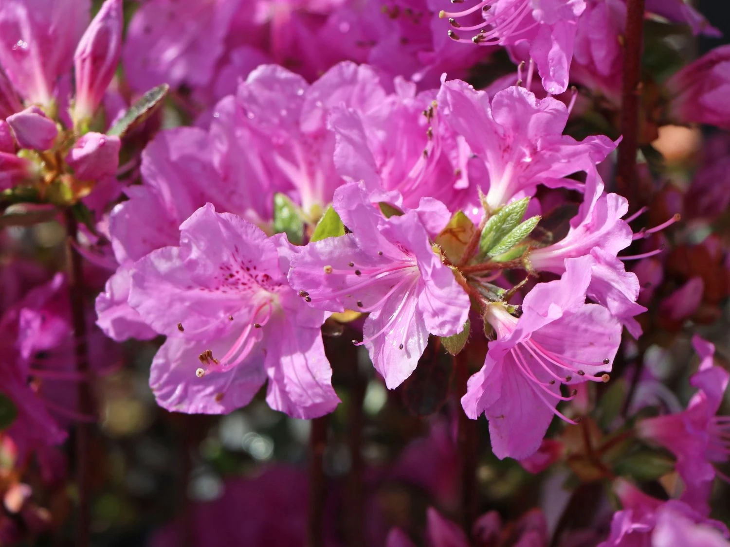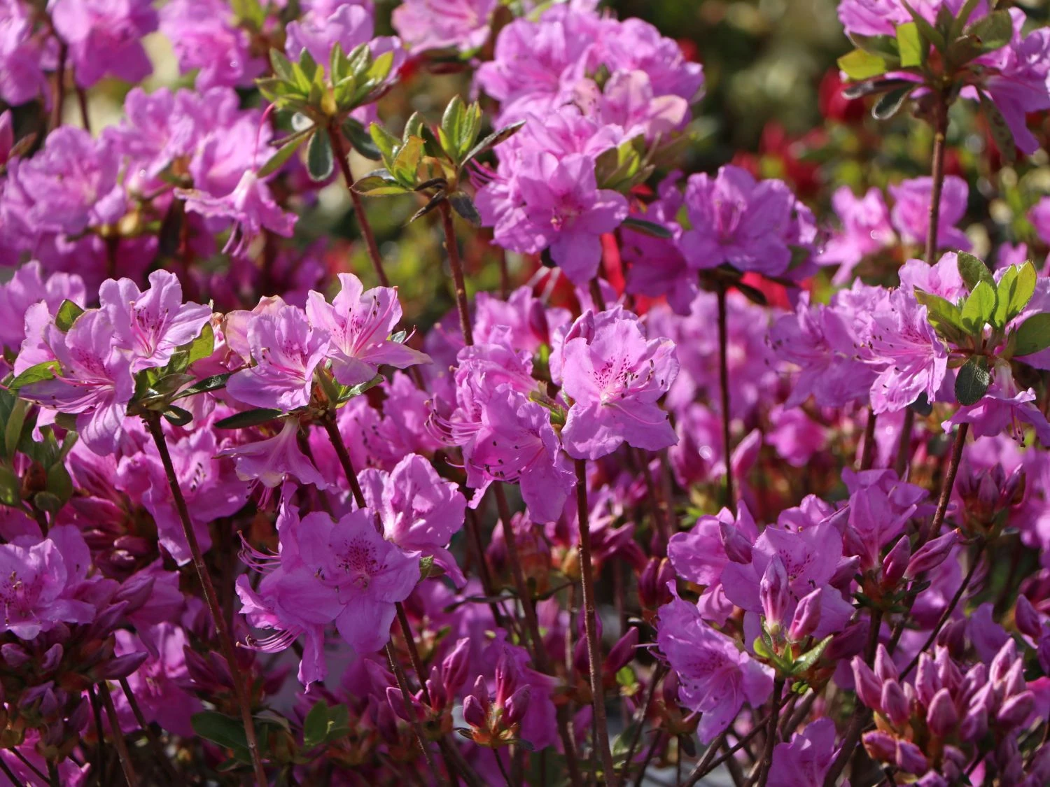 Die Japanische Azalee ‚Otava‘ überzeugt durch ihre eleganten Blüten. Diese sind leuchtend hellrosa, breit geöffnet und erinnern in der Form an funkelnde Sterne. Im Inneren ist die Blüte mit einer interessanten dunkellila Zeichnung verziert. Die Blütentage sind im Zeitraum vom 26 Mai bis zum 10. Juni. Das Blattwerk des Rhododendron obtusum ‚Otava‘ ist länglich eiförmig bis oval und mattgrün. Es gibt keine Herbstfärbung. Der Kleinstrauch ist wintergrün und er stößt im Frühling nur nach sehr kalten Wintern alle Blätter ab. Die Japanische Azalee ‚Otava‘ wächst dicht und kompakt und erreicht nach 10 Jahren eine maximale Höhe von 80 cm sowie eine Breite von bis zu 100 cm. Sie verzeichnet einen durchschnittlichen Zuwachs von 5 bis 8 cm im Jahr.