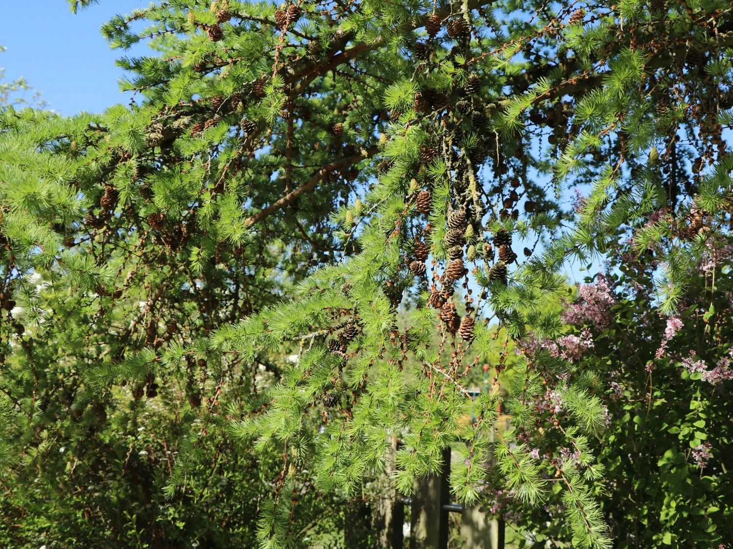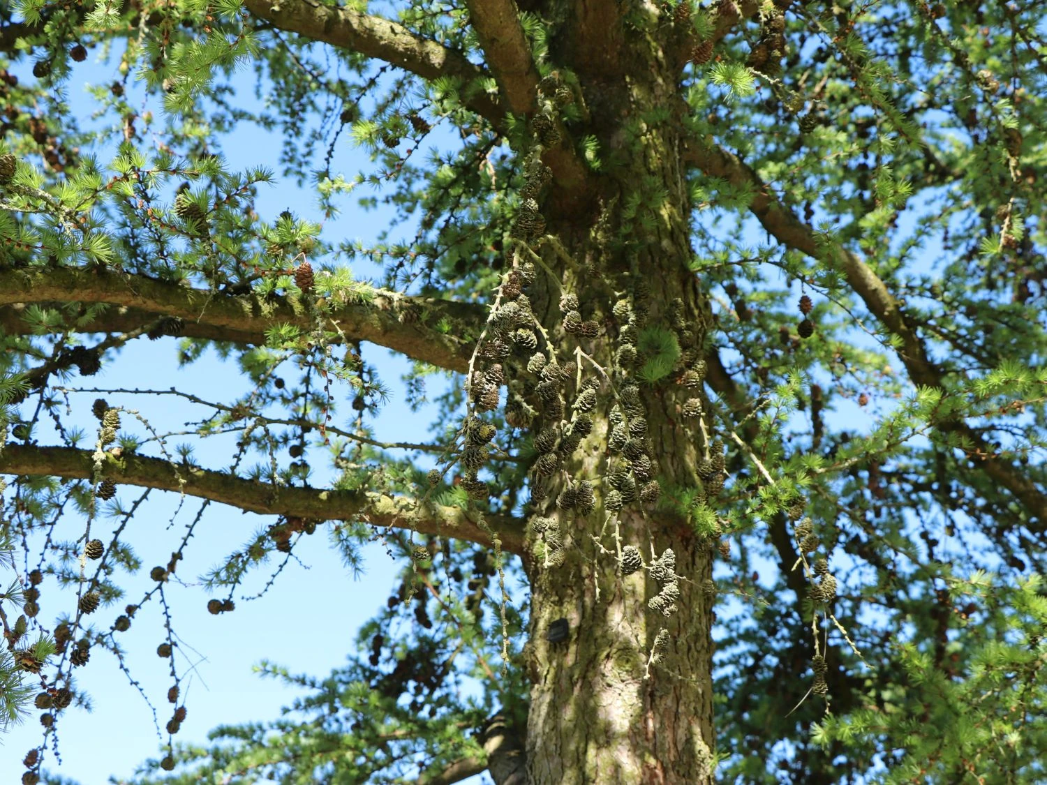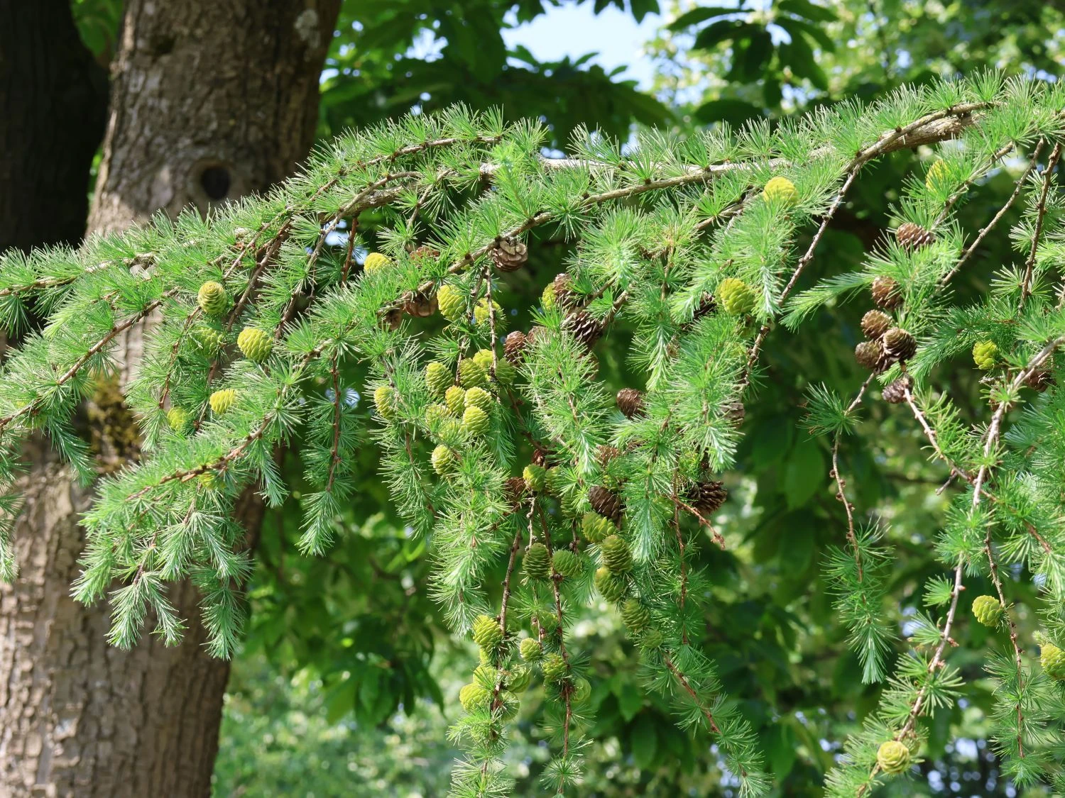 Die braunen Zapfen sind fast kugelförmig, sobald sie reif sind, rollen sich die Schuppen nach außen um. Die Japanische Lärche entwickelt eine breitkegelige Krone und streckt ihre Äste waagerecht aus. Sie wird zwischen 25 und 30 m hoch.