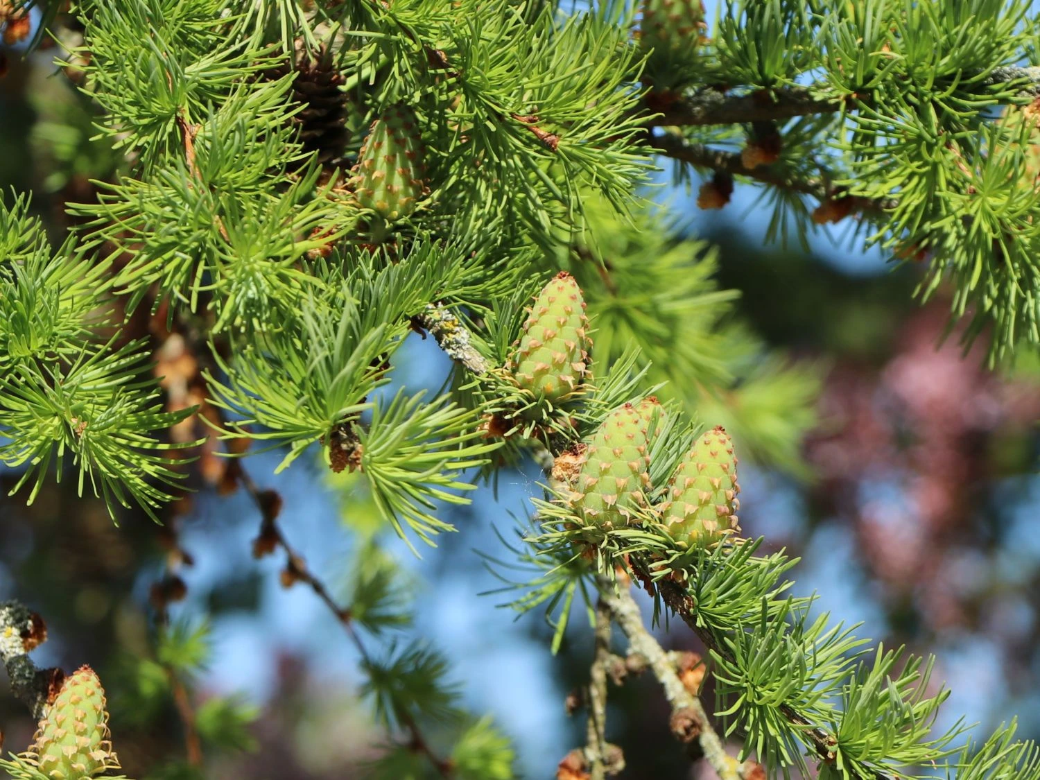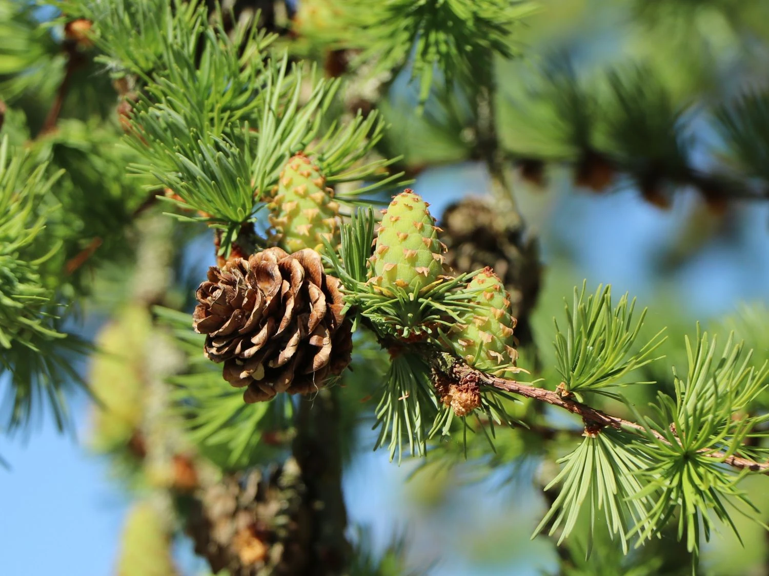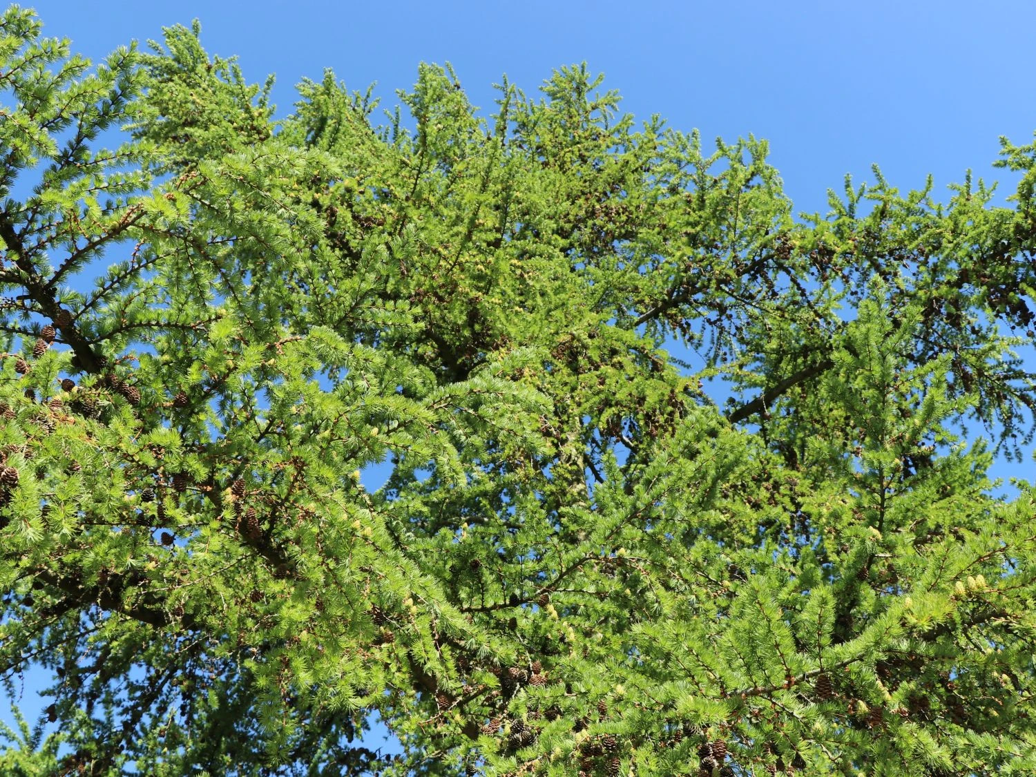 Die braunen Zapfen sind fast kugelförmig, sobald sie reif sind, rollen sich die Schuppen nach außen um. Die Japanische Lärche entwickelt eine breitkegelige Krone und streckt ihre Äste waagerecht aus. Sie wird zwischen 25 und 30 m hoch.