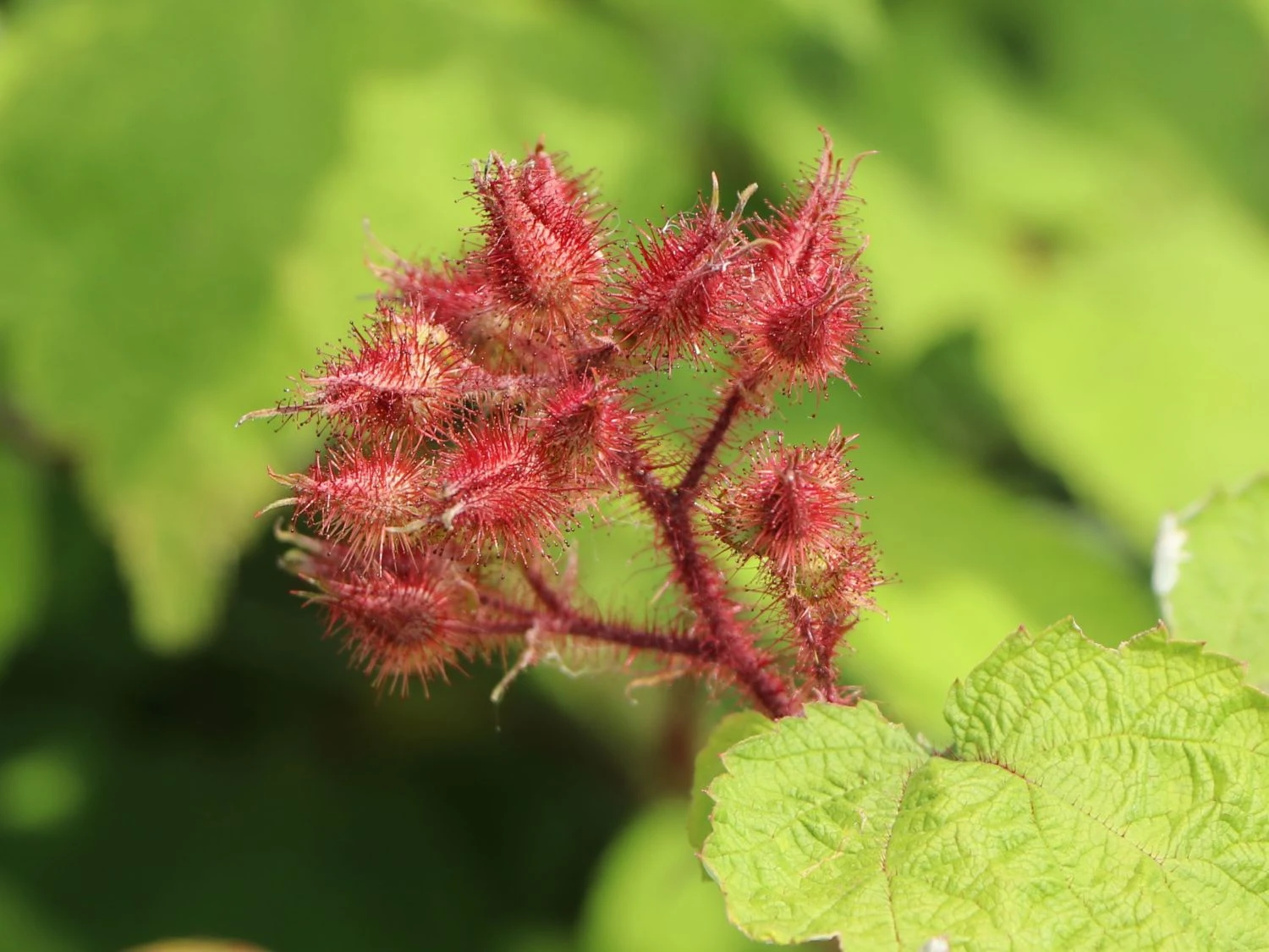 Um Schädlinge nicht an die Früchte kommen zu lassen, greift die Pflanze zu einem Trick: Sie umhüllt sie mit Kelchblättern, die einen klebenden Tau abgeben, die Schädlinge bleiben daran hängen.