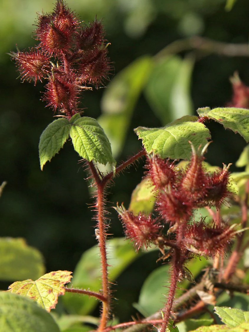 Bei der Japanischen Weinbeere handelt es sich um einen Strauch der besonderen Art. Er wächst bogig überhängend und trägt hellrosa Blüten. Sie sitzen dicht in Trauben zusammen und werden im Herbst zu orangeroten, weichen und saftigen Früchten. Sie schmecken süß mit einem leicht säuerlichen Einfluss.