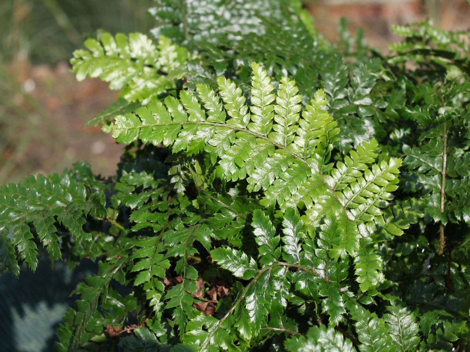 Japanischer Schildfarn ist robust und kommt mit einem geringem Pflegeaufwand aus. Gegen einen vollsonnigen Standort hat Polystichum polyblepharum erhebliche Einwände vorzubringen. Um das Wachstum und das Bilden der feinen, dunkelgrünen Blätter zu fördern, ist aus diesem Grund ein Pflanzort im Halbschatten ideal für das aparte Gewächs. Nur hier kann der Farn seine volle und ausladende Pracht optimal entfalten. Am richtigen Standort gepflanzt, ist das fernöstliche Ziergehölz widerstandsfähig und langlebig. Es erfreut den Gärtner über viele Jahre hinweg an seinem angestammten Platz. Ein frisches, feuchtes und humoses Substrat erfüllt die wenigen Ansprüche des prachtvollen Farns zur Genüge. Pro Quadratmeter setzt der Gärtner eine bis drei Exemplare. Hier gilt die Devise: Weniger ist mehr. In der kalten Jahreszeit büßt die Pflanze mit den zweifach gefiederten Blättern nichts von ihrer Faszination ein. Ein Grund mehr, die Staude im Winter nicht ihres glänzendes Laubs zu berauben. Selbst zweistellige und lang anhaltende Minustemperaturen fügen der unverwüstlichen Pflanze keinen Schaden zu.