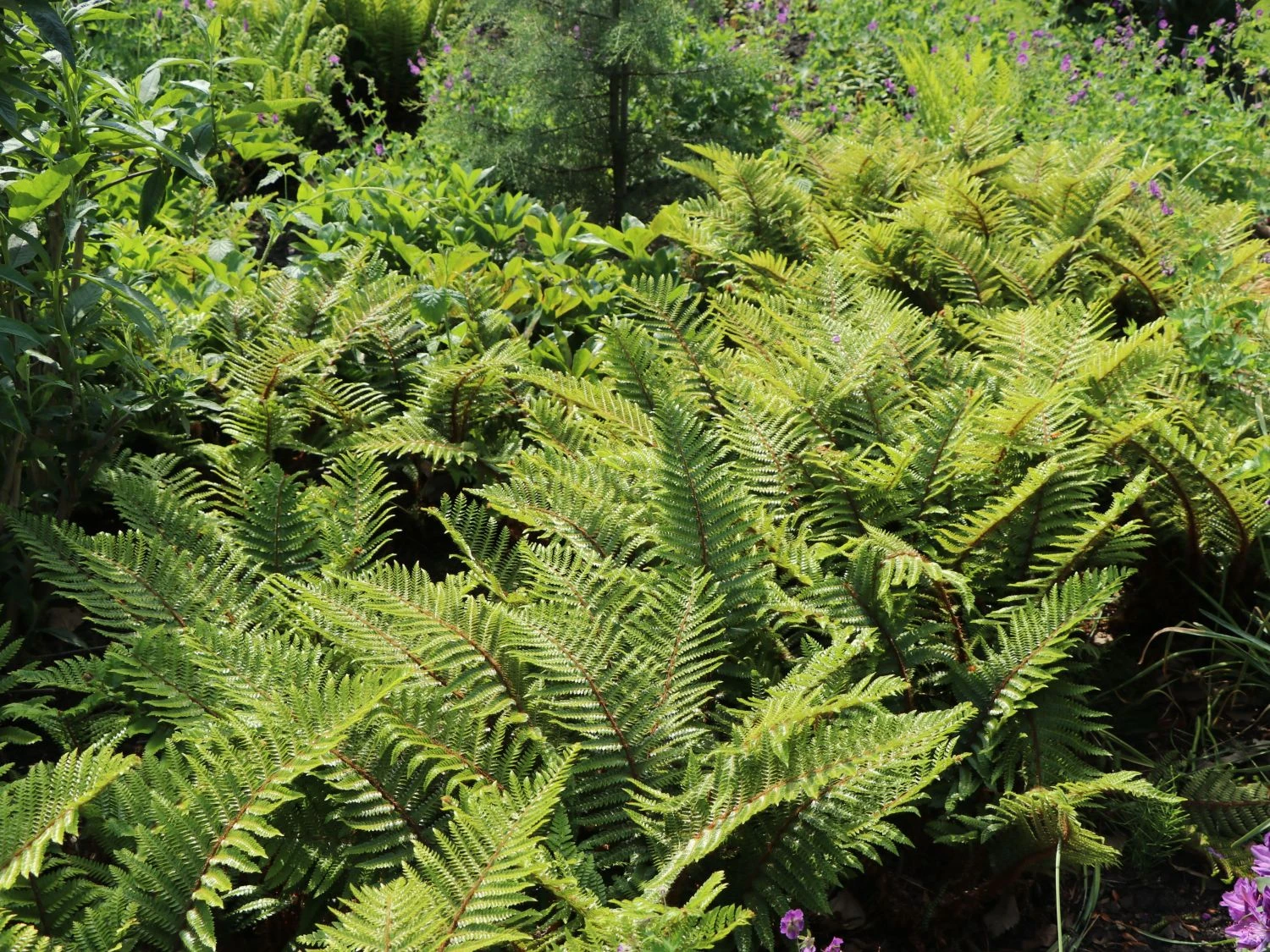 Der Japanische Schildfarn ist ein faszinierendes Gewächs. Charakteristisch für den Farn ist seine große, horstbildende Wuchsform. Mit diesem Merkmal ist das herrliche Gewächs garantiert nicht zu übersehen. Der Farn lässt sich vielseitig im Garten einsetzen. Allerdings steht er am liebsten alleine. Nicht verwunderlich, die mehrjährige Staude erreicht eine Wuchsbreite von bis zu 80 Zentimetern. Mit einer maximalen Höhe von rund 90 Zentimetern dominiert Polystichum polyblepharum seinen Pflanzort. Seine geneigten und breit ausladenden Triebe prädestinieren den Farn zum Aufwerten kahler Standorte und zum Begrünen von Stein- und Hanganlagen. An Pflanzorten in der Nähe von Gewässern fühlt sich der Schildfarn heimisch und bildet hier eine schmückende grüne Pflanzeninsel. Das oftmals als Filigranfarn bezeichnete Gewächs macht in großen Kübeln und Trögen eine gute Figur. Hier ist es eine willkommener Kontrast für einen großen Balkon und die ausladende Terrasse. Die schöne Pflanze schmückt alles um sich herum in einem herrlichen Grün. Ob als optischer Blickfang oder zum dekorativen Abgrenzen, alles ist umsetzbar. Der Fantasie des Gärtners sind hierbei keine Grenzen gesetzt.