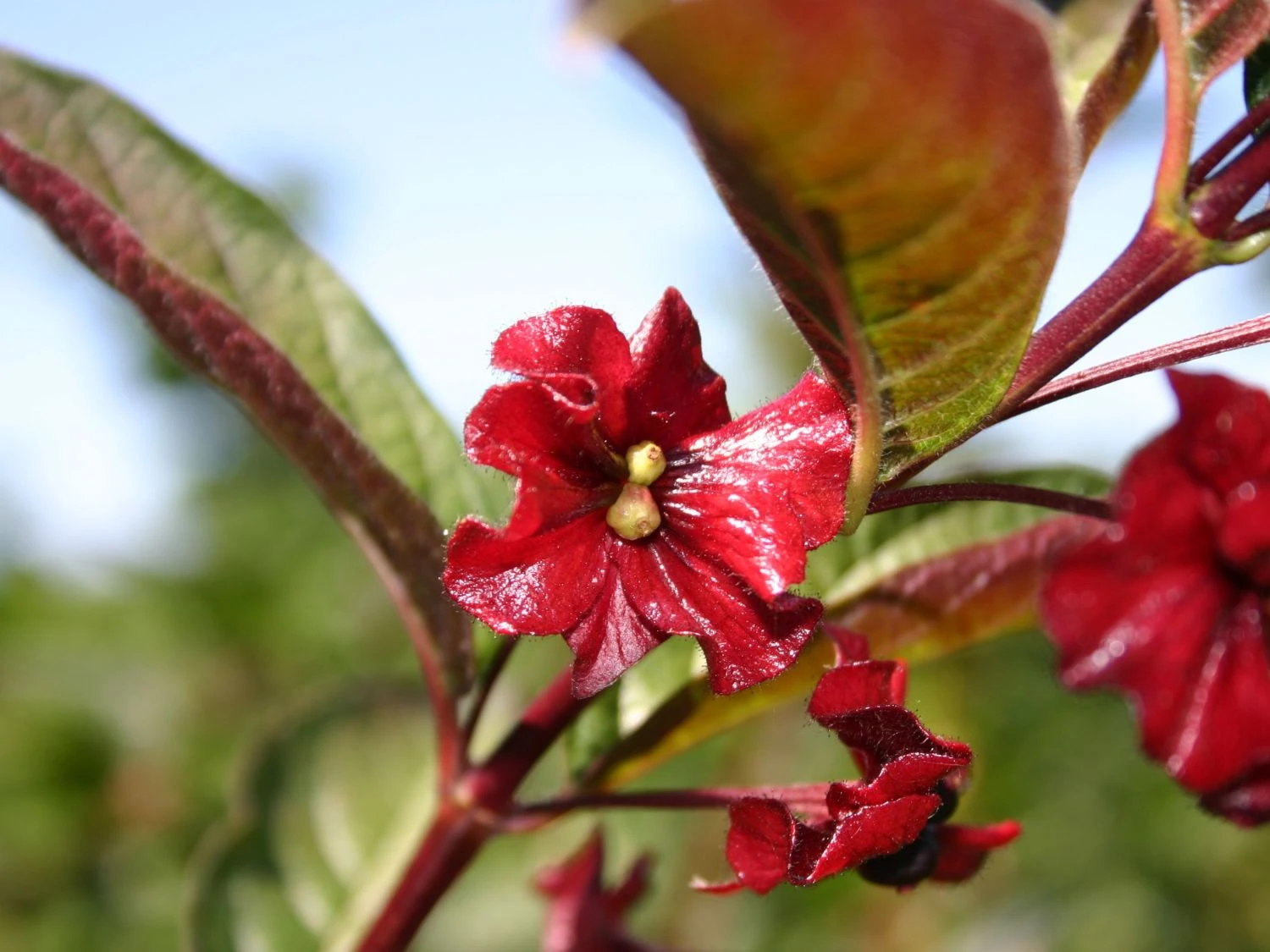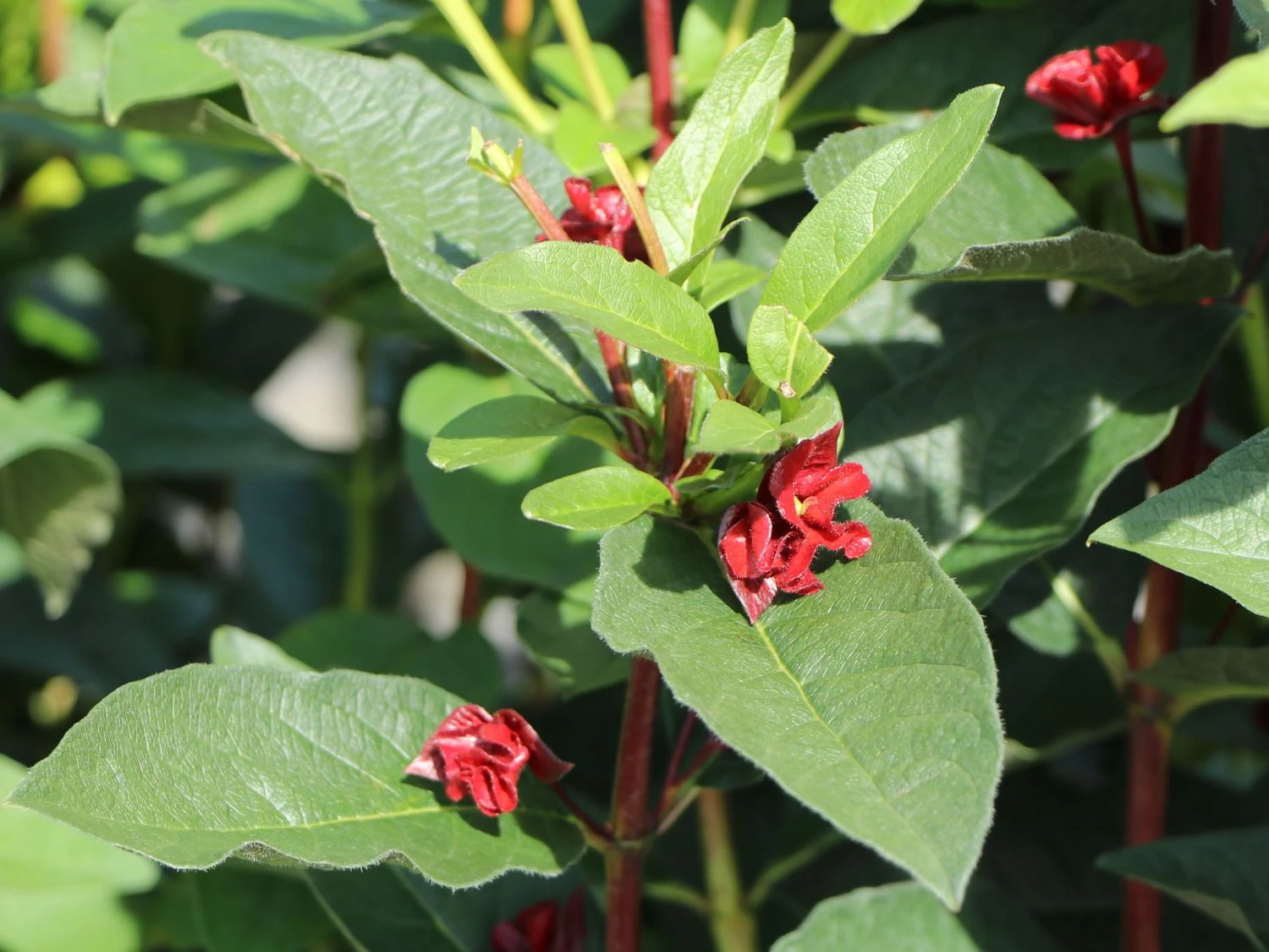 Die Kalifornische Heckenkirsche stammt ursprünglich aus der Küstenregion Kaliforniens und erfreut hierzulande mit ihrer robusten Art. Der Strauch ist attraktiv und wächst locker und bogig überhängend. Die (bot.) Lonicera ledebourii ist ein schwach verzweigtes Gehölz mit schlanken, rutenartigen Trieben aus der Gattung Lonicera. Diese Heckenkirsche entstammt der Familie der Caprifoliaceae und ist unter dem weiteren deutschen Namen Schwarzrote Heckenkirsche bekannt. Diese faszinierende Pflanze eignet sich als Zierstrauch in verschiedenen Arrangements und ist ein ein wichtiges Vogelschutzgehölz. Während sie in der Jugend ein vasenförmiges Wachstum zeigt, entwickelt sie im Alter eine auseinanderstrebende Form. In der Höhe sind 200 bis 300 cm zu erwarten. Auch in der Breite erreicht das Laubgehölz circa zwei Meter. Jährlich kommt er seinem Ziel um 20 bis 35 cm näher. Die sommergrünen Blätter der Pflanze sind eiförmig und lanzettlich. Sie wachsen gegenständig, werden 6 bis 12 cm lang und sind runzelig, dicklich und mattglänzend dunkelgrün. Auf der unteren Seite zeigen sie sich hell graugrün und weich behaart. Nach der Sommerzeit nehmen sie eine unscheinbare Herbstfarbe an. An einem sonnigen bis schattigen Standort stellt die Kalifornische Heckenkirsche keine weiteren großen Ansprüche an den Boden. Die Pflanze gedeiht auf allen mäßig trockenen bis feuchten, schwach sauren bis alkalischen Untergründen.