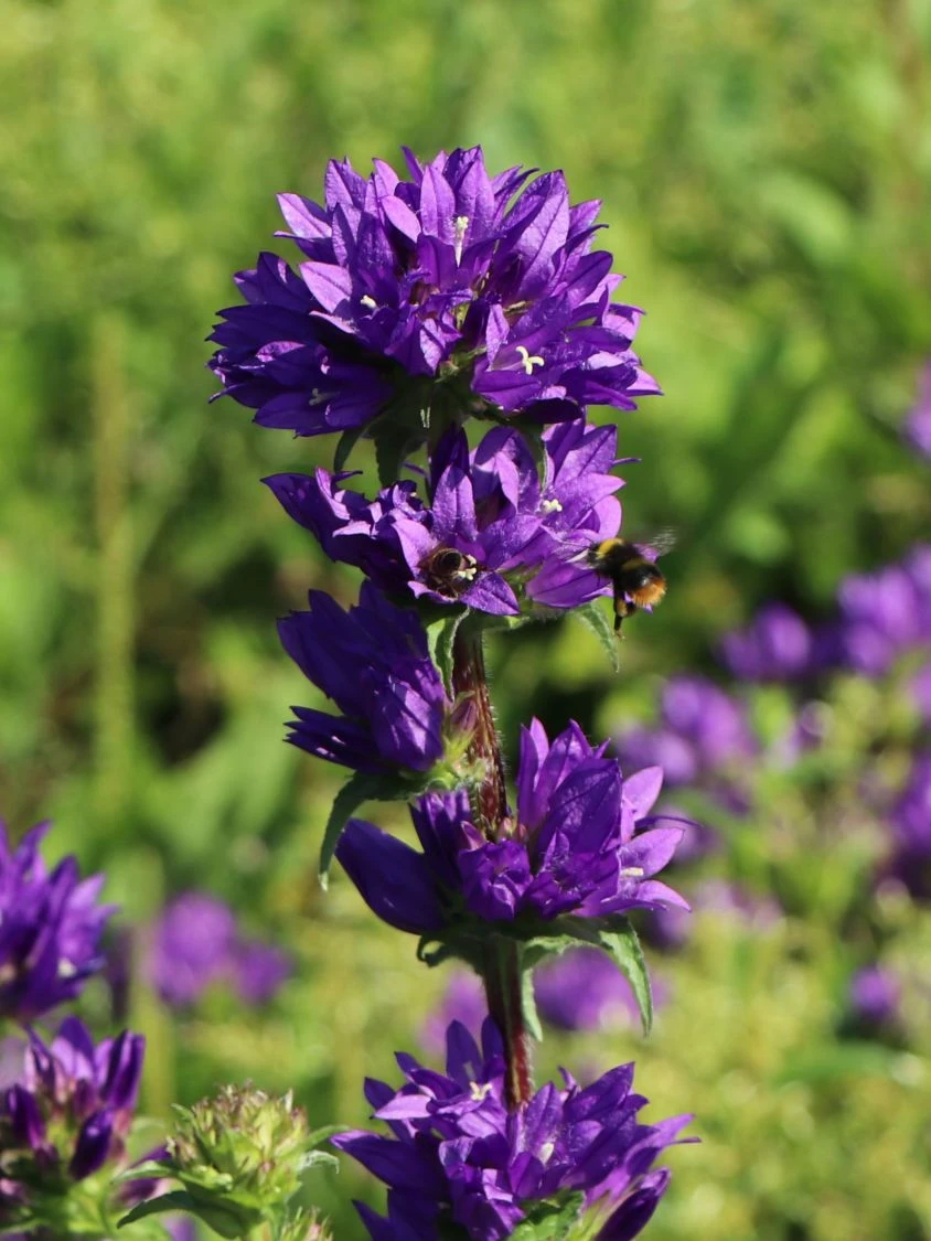 Im Jahr 2001 erhielt die Glockenblume den Titel “Staude des Jahres“. Die Knäuel-Glockenblume ‚Superba‘ hat den Charakter einer Wildstaude und passt damit wunderbar in üppig blühende Bauerngärten. Sie ziert Rabatten und Beete aller Art. Auch im Kübel verzaubert sie mit ihrem Anblick auf Balkon oder Terrasse. Vor der Samenreife erfolgt der Rückschnitt, um eine Selbstaussaat zu verhindern. Mit ihren vielzähligen Blüten ist sie eine hervorragende Nährstaude für Bienen und wirkt auf diese Weise begünstigend auf andere Pflanzen wie Obstbäume in ihrer Nachbarschaft. Diese freuen sich über jede kleine Biene, die sie besuchen kommen. Diese wunderschöne winterharte und mehrjährige Staude verträgt keine Staunässe. Regelmäßiges Gießen, am besten mit Regenwasser, bekommt ihr am besten. Die Campanula glomerata ‚Superba‘ ist extrem winterhart. Temperaturen bis -45°C schaden ihr in keinster Weise. Der Sortenname ‚Superba‘ drückt ihre Eigenschaften in vollem Umfang aus. Sie ist außergewöhnlich und herausragend. Genau diese beiden Worte drücken aus, was die Knäuel-Glockenblume ‚Superba‘ auszeichnet: Eine Pflanze mit wunderschönen Blütenbällen in einer Farbe, die ihre Nachbarn blass aussehen lässt. Die Kunst des Gärtners besteht darin, mit dieser einmaligen Glockenblume herrliche und abwechslungsreiche Kontraste zu inszenieren.