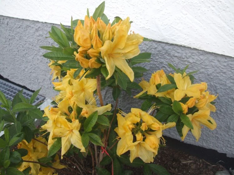 Der Wuchs der Laubabwerfende Azalee ‚Goldpracht‘ gilt als dichtkompakt. Sie wächst auf rund 150 Zentimeter Breite und 120 Zentimeter in der Höhe. Allerdings erreicht sie diese Größe langsam, nach gut zehn Jahren ist die ‚Goldpracht‘ auf rund einen Meter Höhe und 130 Zentimeter im Durchmesser angewachsen. Der laubabwerfende Strauch ist dicht verzweigt. Auch im Winter ist er ein schöner Strukturgeber im Garten. Die kalte Jahreszeit übersteht Rhododendron luteum ‚Goldpracht‘ klaglos. Bis unter -24 °C ist das Ziergehölz winterhart. Damit ist ein Schutz vor Frost und Schnee entbehrlich. Der Flachwurzler freut sich über einen Standort in Sonne oder Halbschatten und wurzelt mit Vorliebe in Rhododendronerde. Auch andere torfhaltige Untergründe mit saurem pH-Wert versprechen ein gutes Gedeihen. Während trockener Wetterphasen gießt der Gärtner regelmäßig. Eine Schicht Mulch über dem Wurzelbereich schützt die Azalee vor dem Austrocknen. Dies ist vor allen Dingen an sonnigen Standorten empfehlenswert.