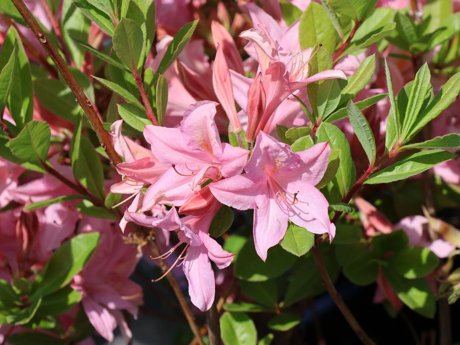 Die Laubabwerfende Azalee ‚Soir de Paris‘ wird Sie und Ihren Garten verzaubern. Das schafft sie vor allem durch ihre romantisch rosafarbenen Blüten, die dunkelrosa gestreift sind und innen eine kleine gelbe Zeichnung verstecken. Sie blüht sehr reich und verströmt bei warmer Witterung einen nicht zu aufdringlichen süßen Duft.