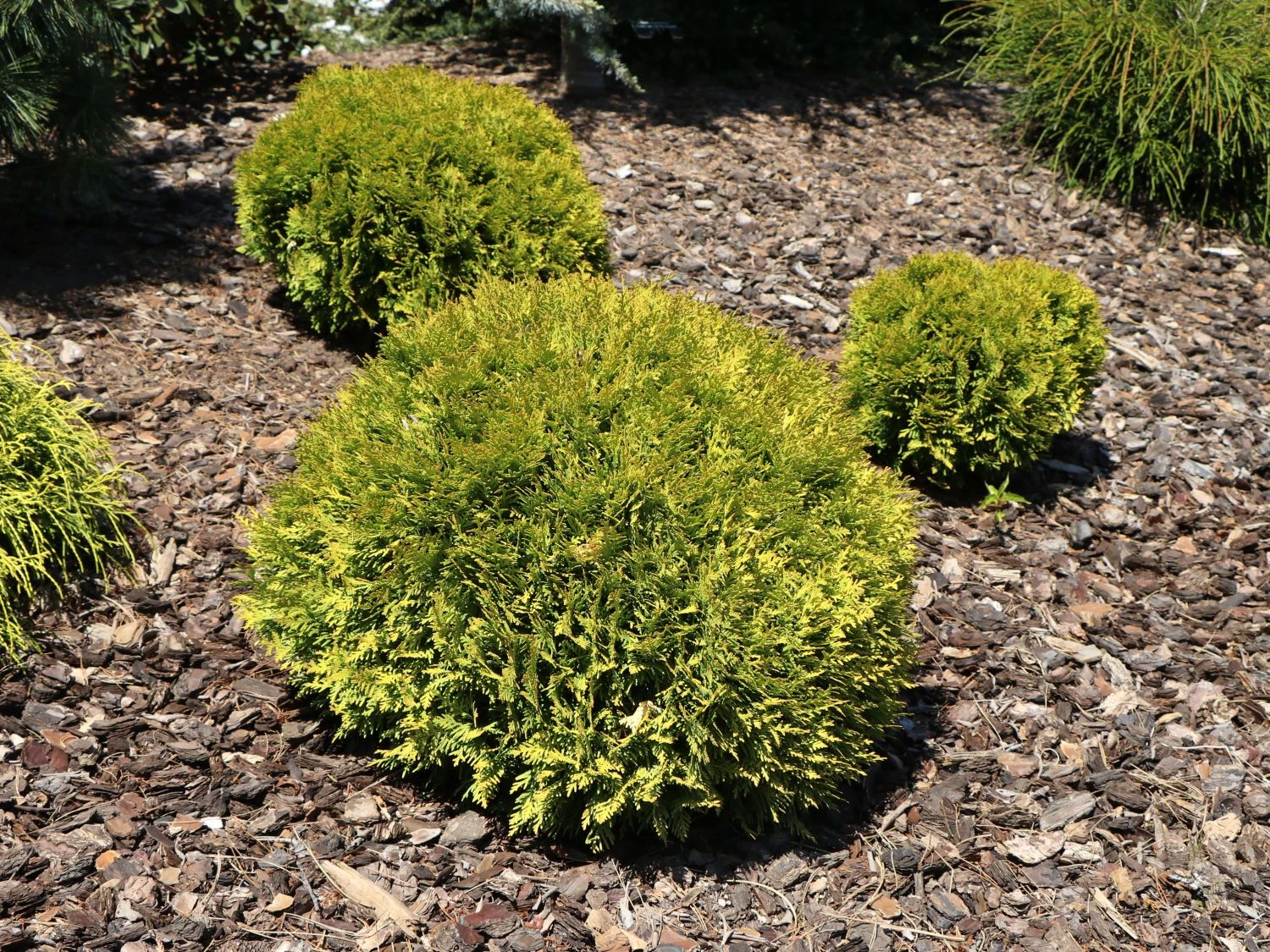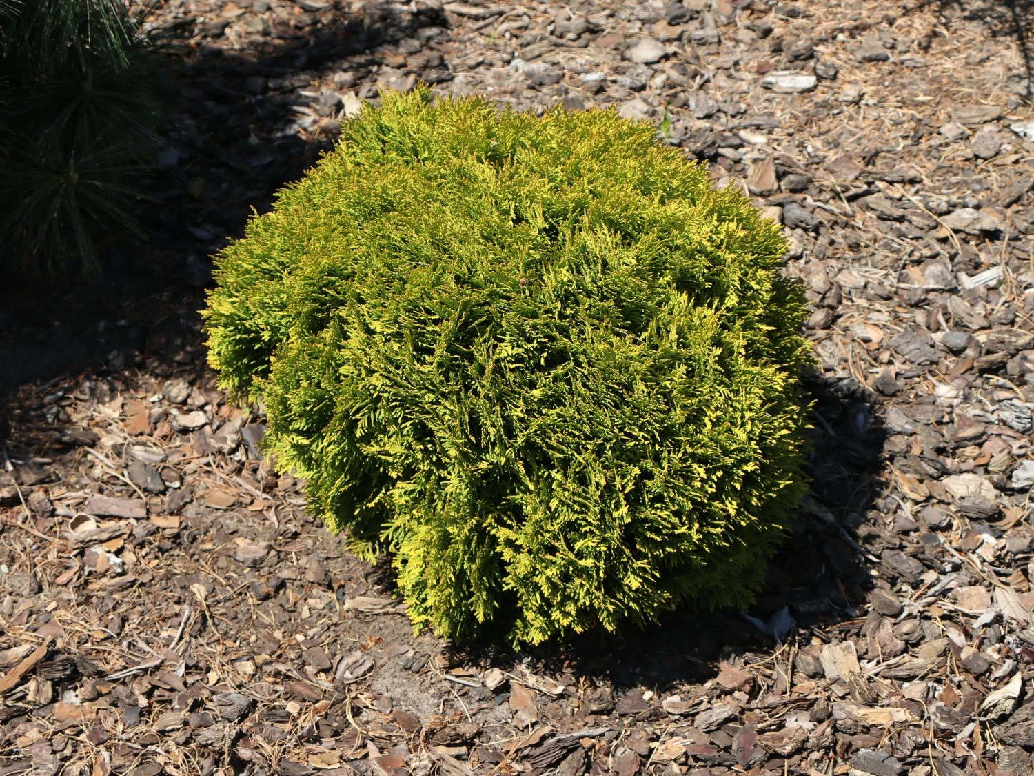 Der Lebensbaum ‚Mirjam‘ besticht durch ein gelbes Nadelkleid, das in jedem Garten sofort auffällt. Der kleine Baum ist wegen seiner kugeligen Form sehr begehrt und kann einzeln gepflanzt werden oder seine Pracht auch in einem Beet neben anderen Lebensbäumen entfalten. Die kleine Pflanze sorgt das ganze Jahr über in jedem Garten oder Beet für einen ansprechenden und originellen Blickfang. Der Grund dafür ist die besondere Farbe der Nadeln und die ansprechende Kugelform. Am wohlsten fühlt sich der Baum, wenn die Sonne auf ihn strahlt. Dann entfaltet er seine ungewöhnliche gelbliche Färbung am besten und entwickelt sich prächtig. Frischer bis feuchter und nährstoffreicher Boden tut sein Übriges, um den Baum kugelig rund werden zu lassen. Viel Arbeit macht der Minibaum nicht, sondern zeigt sich beim Wasserbedarf sehr genügsam statt durstig. Maximal kann der Kugelbaum eine Wuchsbreite von 60 cm erreichen und wird dabei bis zu 80 cm hoch.