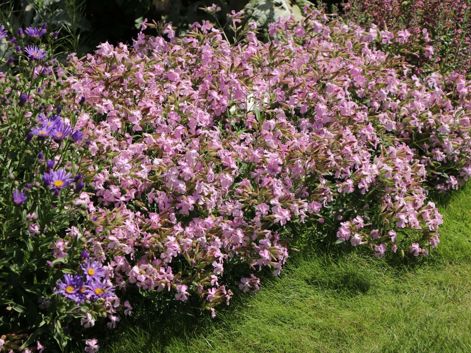 Aber auch einzeln macht diese Staude jeden Ort im Garten zu einer Augenweide, denn solange es ausreichend Sonne gibt, und der Boden gut durchlässig und nicht zu nass ist, geht es dem Lempergs Seifenkraut ‚Max Frei‘ gut. Selbstverständlich mag diese auch bei großer Trockenheit schon das eine oder andere Mal gegossen zu werden, aber ansonsten möchte diese einfach in Ruhe gelassen werden. Wenn sie nicht blühen würde, dann könnte man sie fast schon vergessen. Auch kann sie einfach mit anderen Pflanzen zusammengesetzt werden, solange diese ihr nicht auf die Pelle rücken. Ein wenig Platz mag sie dann doch schon haben, aber weniger kann dann auch mehr sein. Somit sind der Fantasie bei der Gestaltung des Gartens wirklich absolut keine Grenzen beim Anpflanzen gesetzt.
