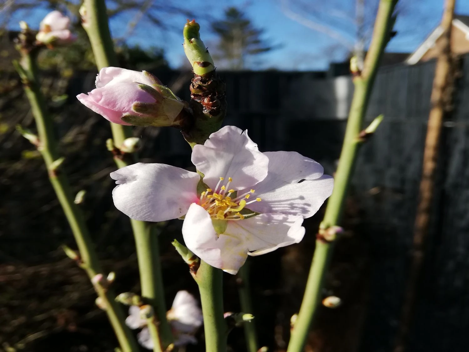 Die Mandelschale ist gelblich-weiß bis braun, asymmetrisch, weichschalig und eiförmig. Sie lässt sich leicht mit der Hand lösen, und umschließt bis zu diesem Moment liebevoll die großen, süßen, aromatischen und gesunden Mandeln. Die Mandeln lassen sich durch den ganzen Winter hinweg naschen und zu leckersten Genüssen, wie gebrannten Mandeln oder Mandellikör, weiterverarbeiten. Die Mandel ‚Säulenmandel‘ begeistert mit seiner bezaubernden Optik und seiner pflegeleichten Art. Im späteren Verlauf des Jahres verwöhnt sie den Gärtner mit köstlichen Früchten. Ab Mitte September ist es soweit: Die Ernte der köstlichen Mandeln beginnt! Bis in den Oktober hinein reifen sie nach. Diese Sorte ist in der Lage, sich selbst zu befruchten. Das heißt, dass Prunus amygdalus ‚Säulenmandel‘ nicht zwingend auf Befruchter in ihrer unmittelbaren Nähe angewiesen ist. Allerdings sichert ein anderer Mandelbaum oder eine Pfirsichsorte in der Nähe höhere Erträge durch zuverlässigeres Bestäuben der Blüten. In der Höhe erreicht die säulenförmig wachsende Mandel ‚Säulenmandel‘ zwischen vier und sieben Meter. Der Durchmesser beläuft sich auf drei bis sechs Meter. Um den schönen schlanken Wuchs des Mandelbaums zu erhalten, ist es ratsam, einen jährlichen Rückschnitt durchzuführen. Im Garten gepflanzt, zeigt sich dieser attraktive Gartenbewohner winterhart. Das Gehölz verträgt Temperaturen bis circa -15 °C und benötigt ausschließlich im Kübel einen leichten Winterschutz. Allerdings leiden in Regionen mit strengen Wintern die Triebe der Pflanze. Auch setzen Spätfröste den Blüten zu. Kündigen sie sich an, bedeckt der sorgsame Gärtner die Triebe mit den Knospen mit einem Vlies. Die Mandel ‚Säulenmandel‘ benötigt nicht viel für ein glückliches Leben und ist in Bezug auf Schädlinge und Krankheiten wenig anfällig. Auch stellt sie keine besonderen Ansprüche an den Boden. Lediglich einen sonnigen Standort weiß sie zu schätzen. Auf einem nährstoffreichen, humosen und durchlässigen Boden steht dem gesunden Dasein dieses Zierbaumes nichts im Wege. Dafür bedankt er sich mit einer ausgiebigen und unvergleichbar schönen Blütezeit.